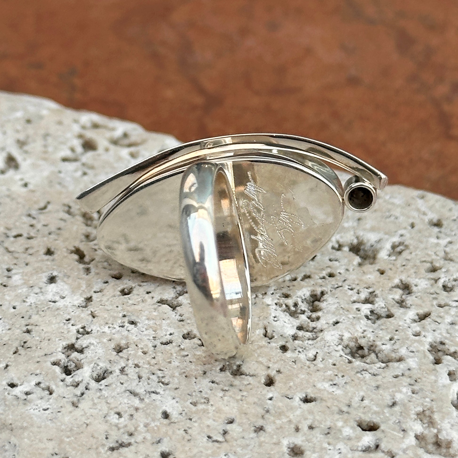 Designer Lucine and Ursula Sterling Silver Irregular Turquoise and Black Diamond Ring