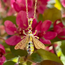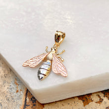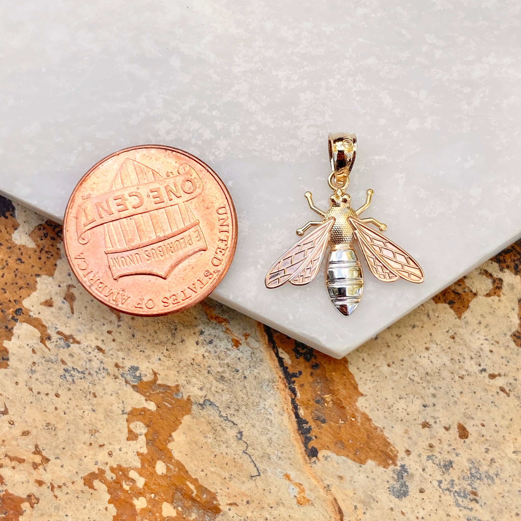 Tri-Color 14KT Yellow Gold, Rose Gold, + White Rhodium Bee Pendant Charm