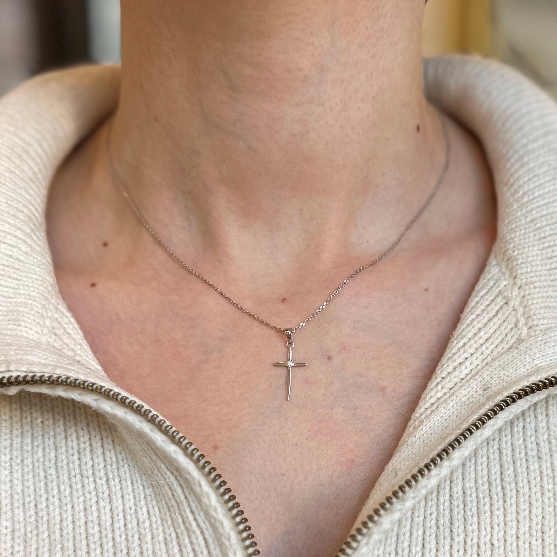 Two-Tone 14KT Yellow Gold Diamond Shape Center Cross Pendant Charm 28mm