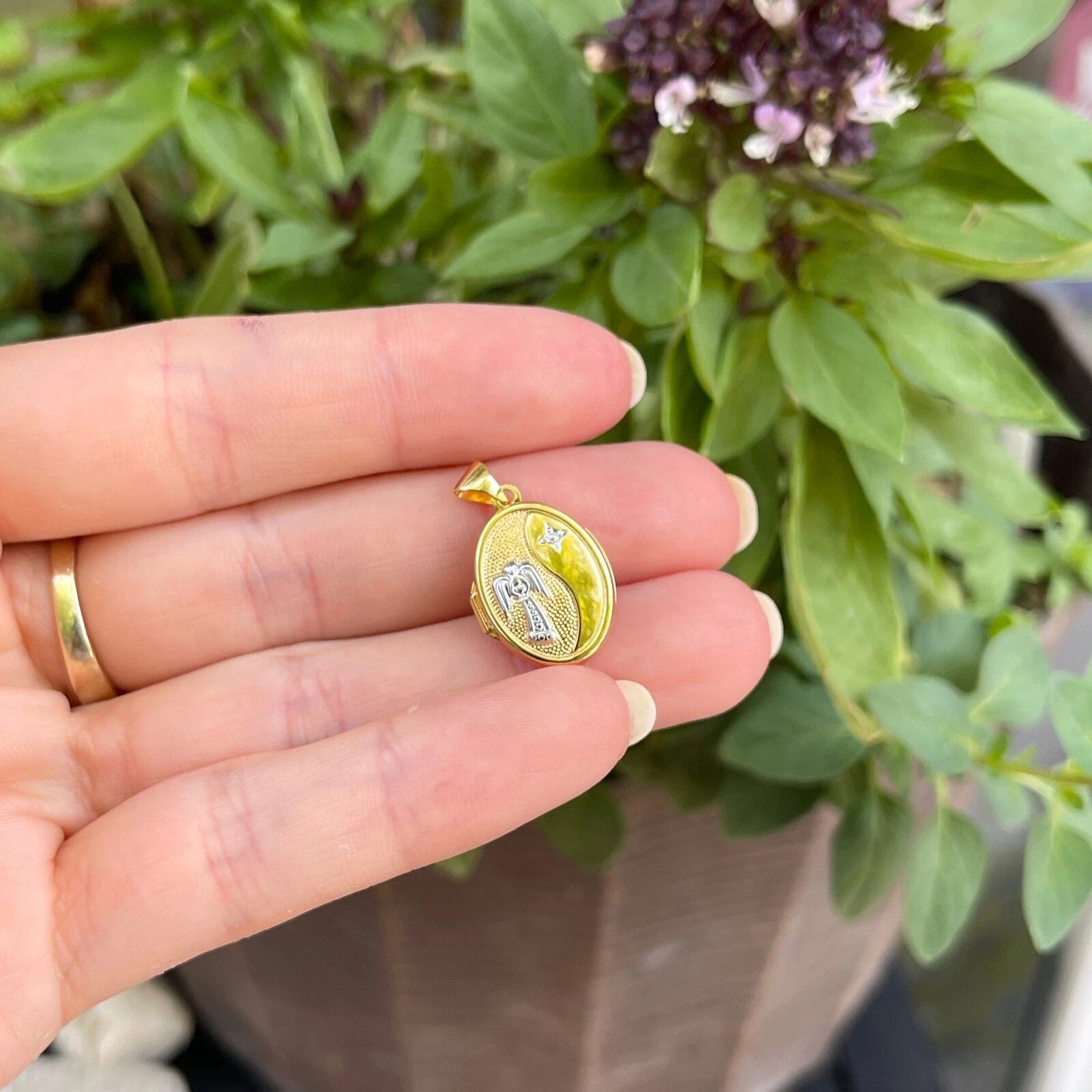 14KT Yellow Gold White Rhodium Guardian Angel Locket Pendant