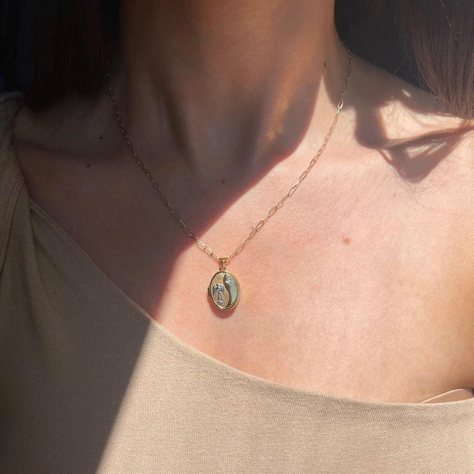 Two-Tone 14KT Yellow Gold + White Rhodium Guardian Angel Locket Pendant. Backside of locket is engraved with" Your Guardian Angel to Love and Protect You". A beautiful wearable reminder of your faith and the peace that it brings! Wear with both white gold and yellow gold!
