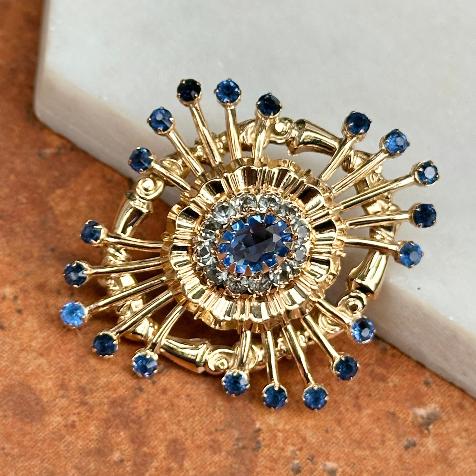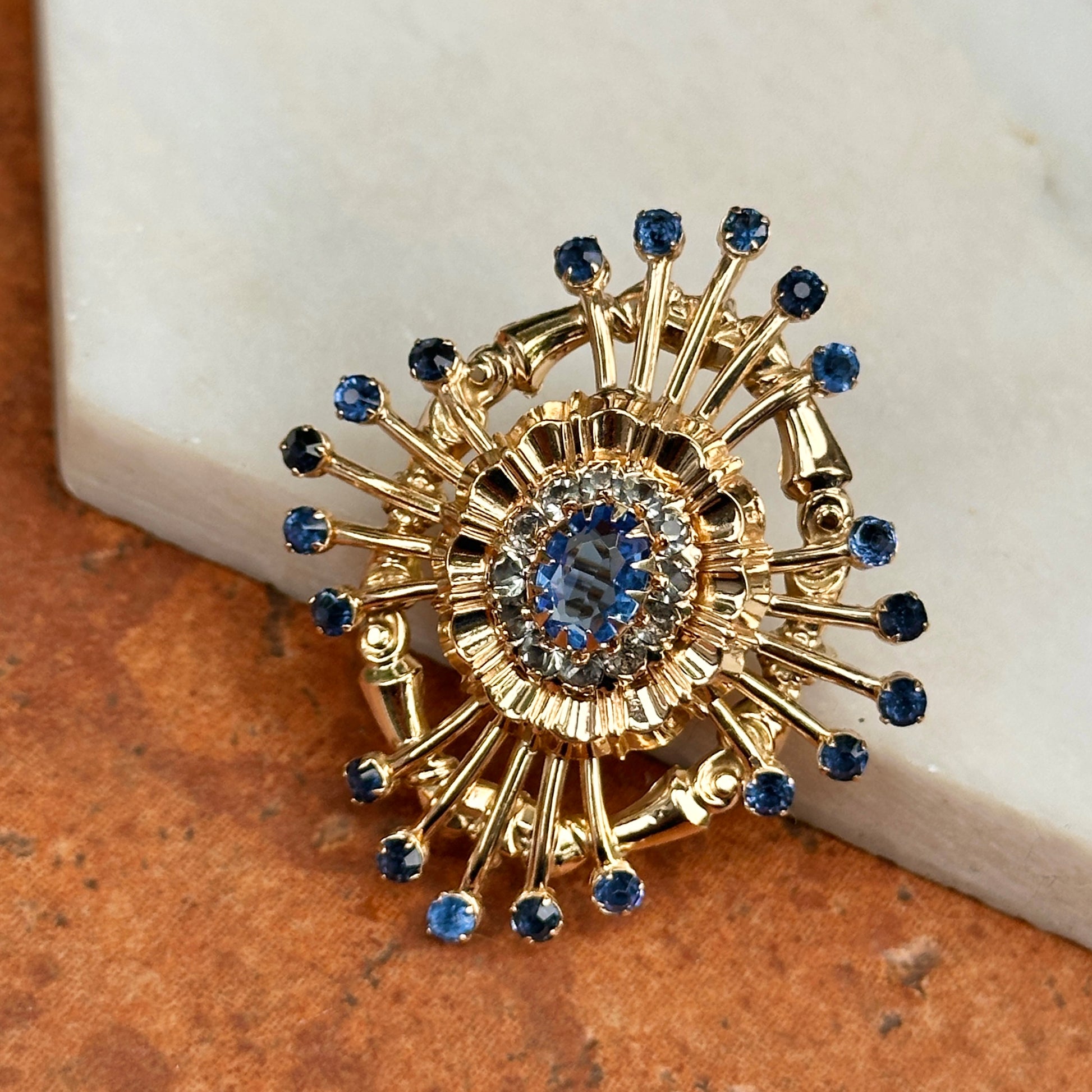 Vintage 10K Yellow Gold Oval and Round Blue Stone Pin