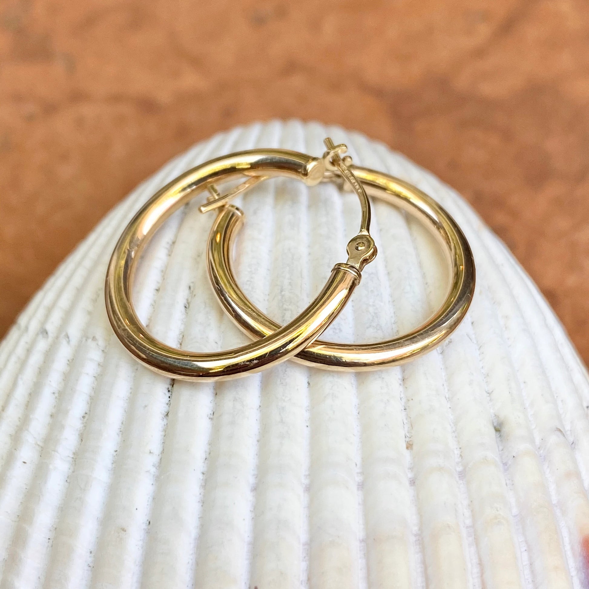 10KT Yellow Gold Shiny-Finish Tube Round Hoop Earrings