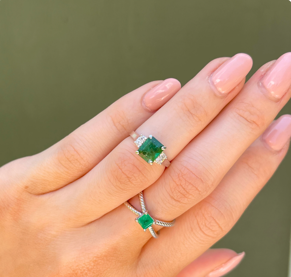 - Emerald measures: 7.5 mm long x 6 mm wide plus unknown depth