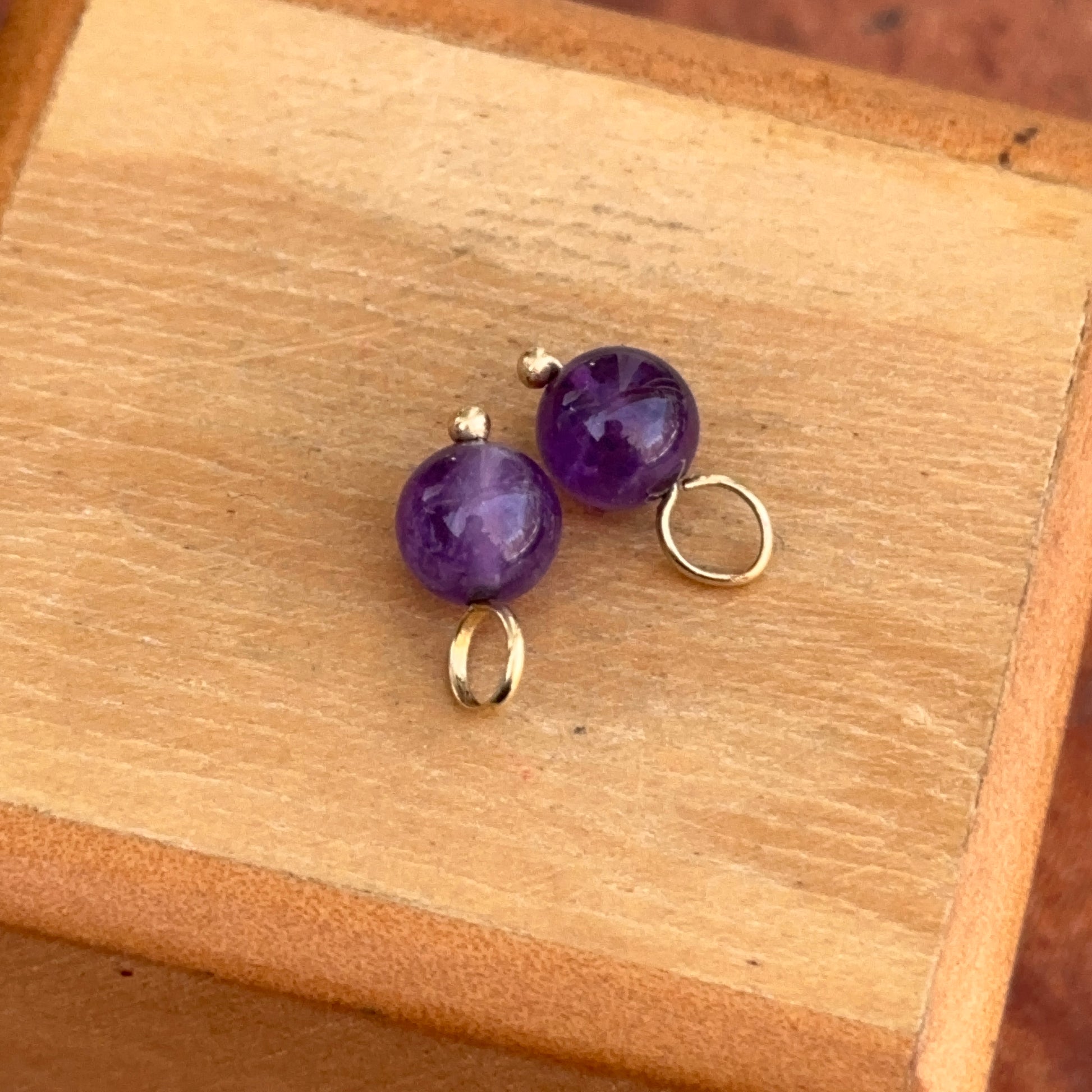 Estate 14KT Yellow Gold & Amethyst Ball Earring Charms 6mm