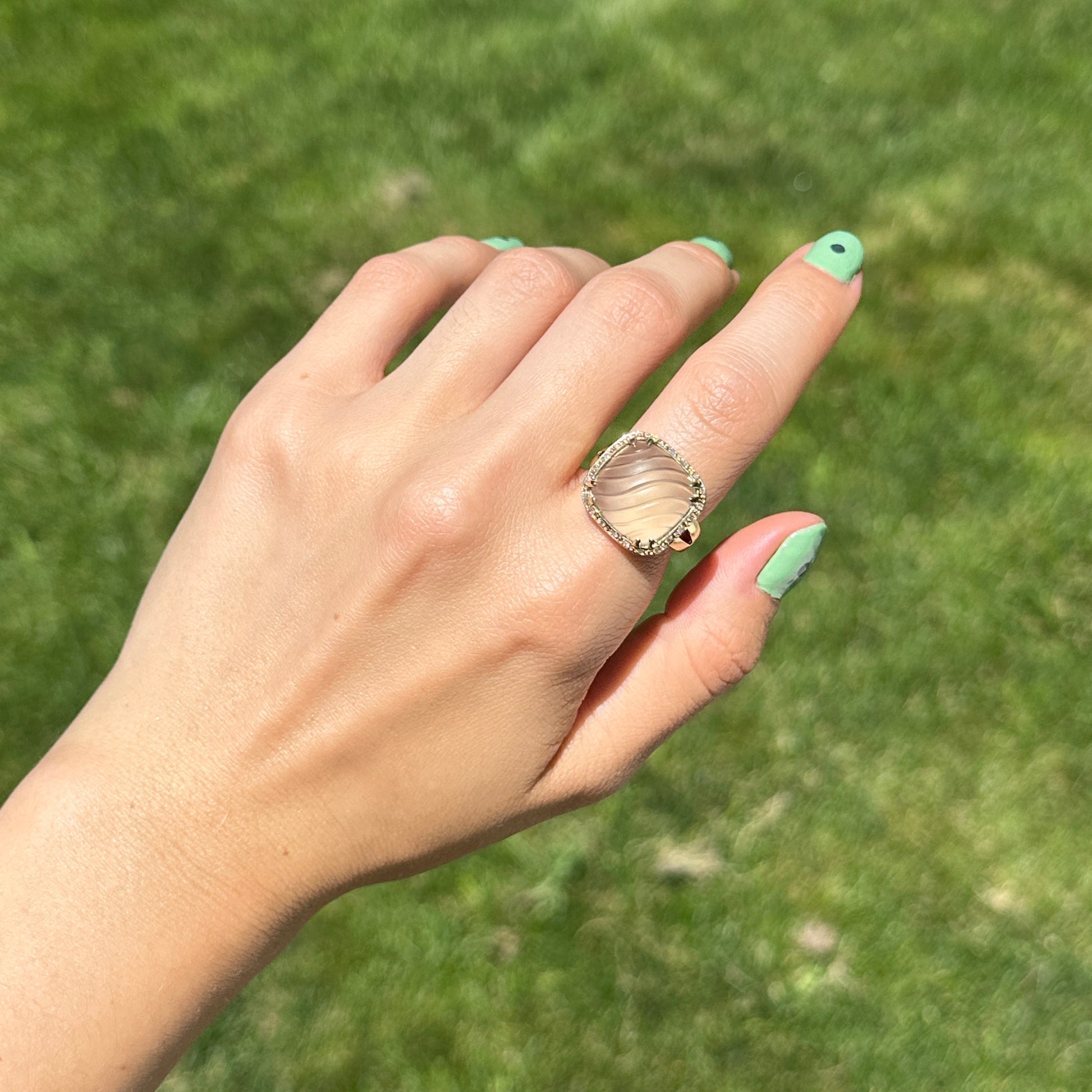 Estate 14KT Yellow Gold Faceted Frosted Green Amethyst + Diamond Ring