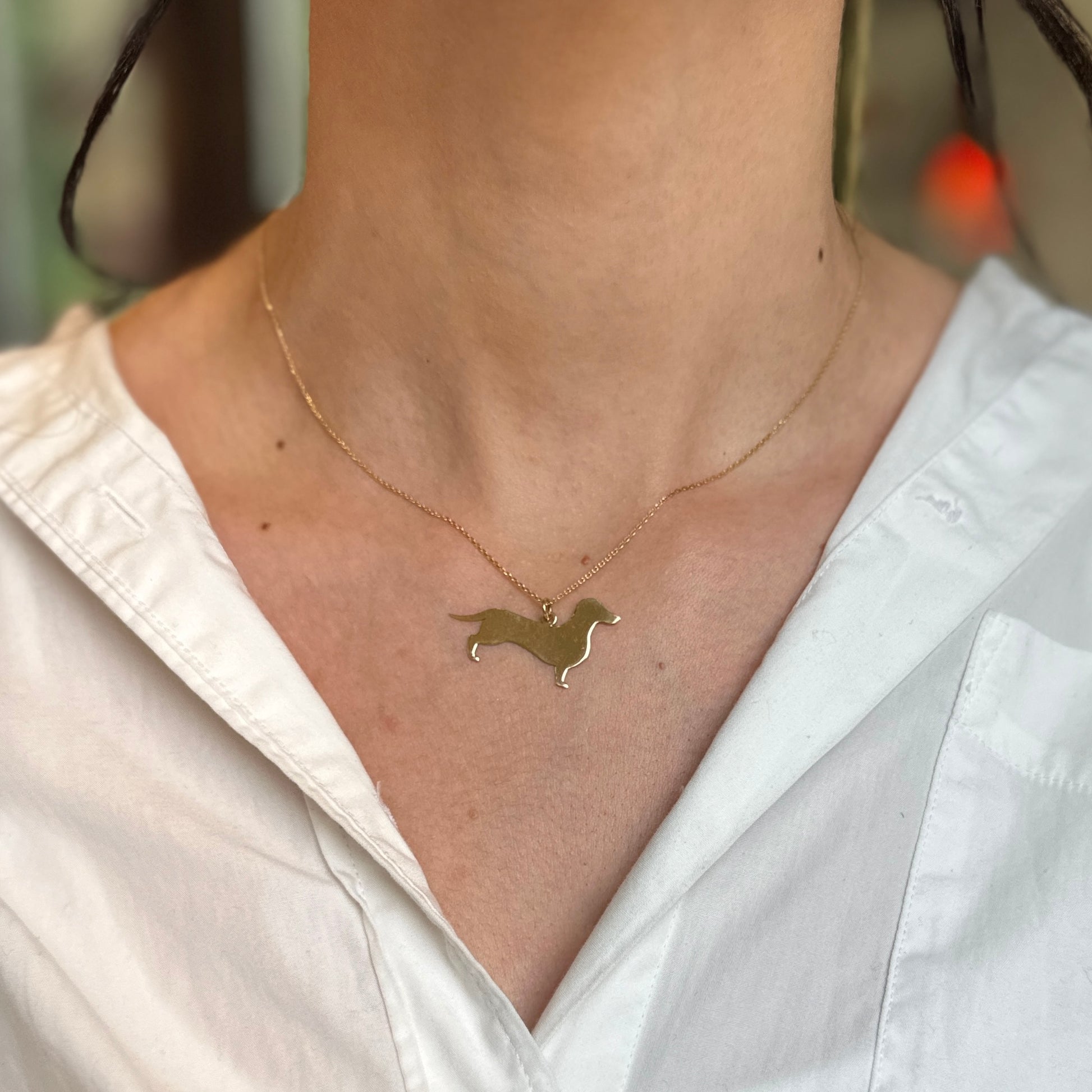 14KT Yellow Gold Flat Dachshund Dog Pendant Charm