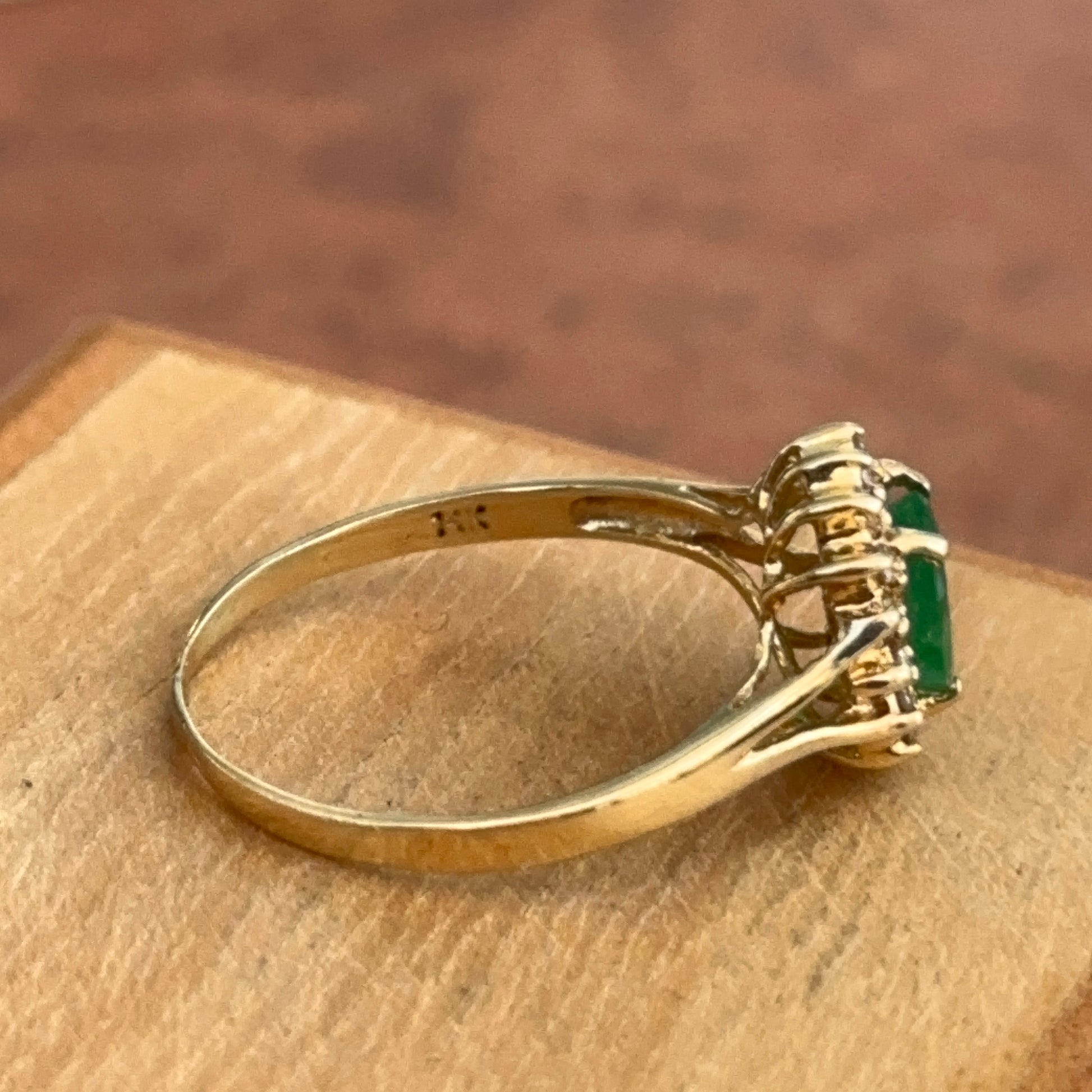 Estate/ Vintage 14KT Yellow Gold Oval-Cut Genuine Emerald + Diamond Halo Ring