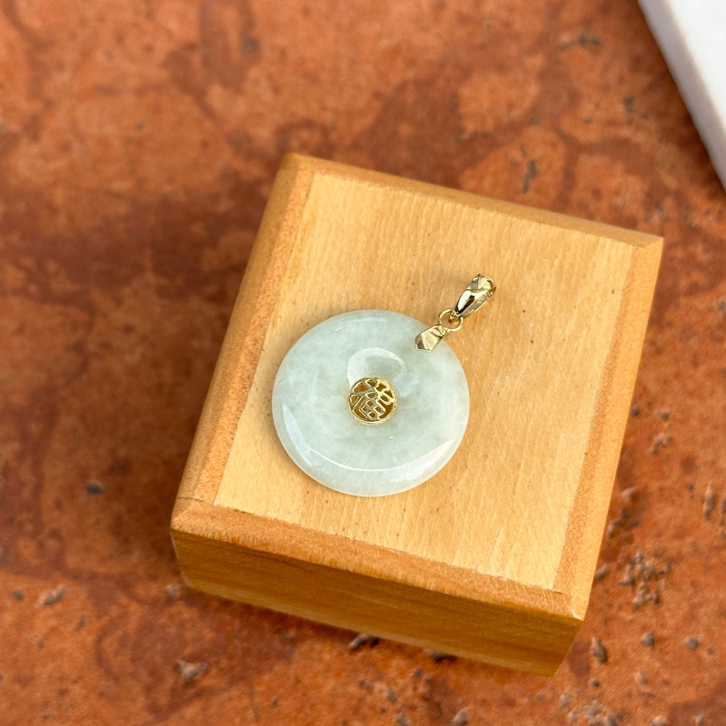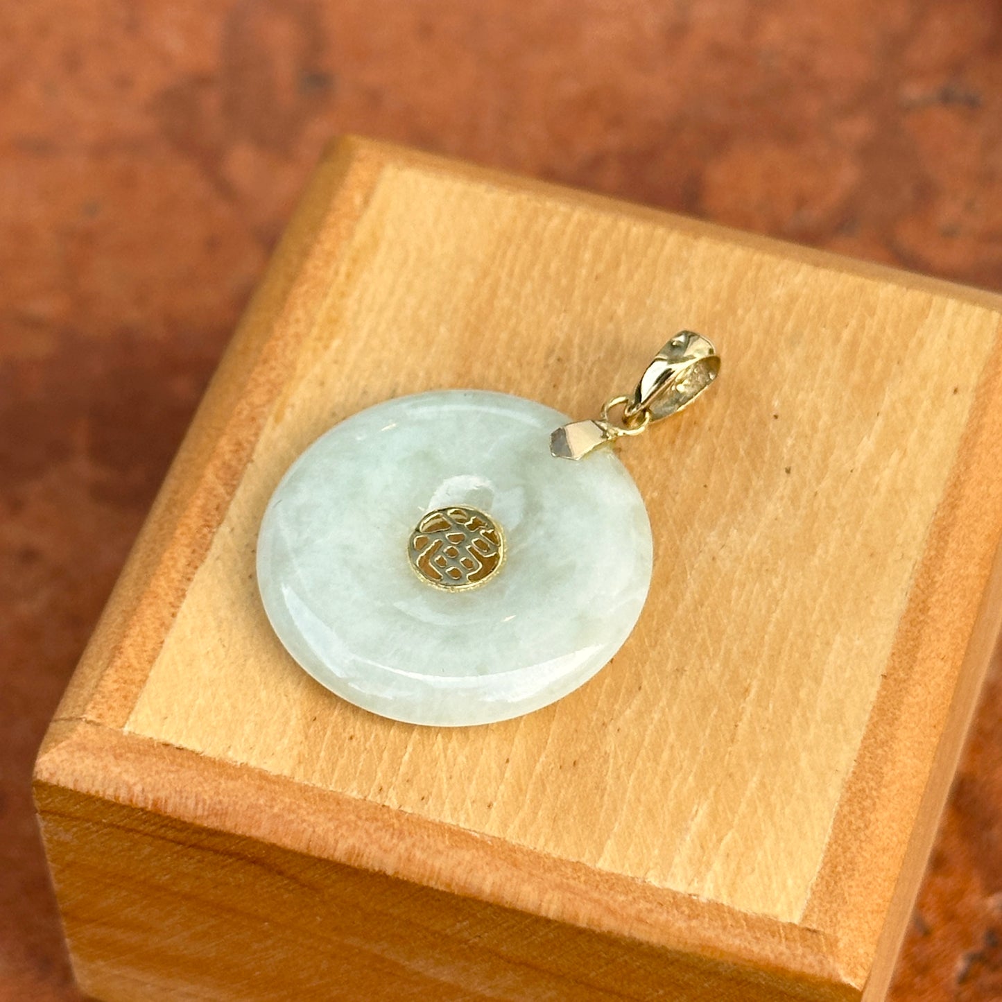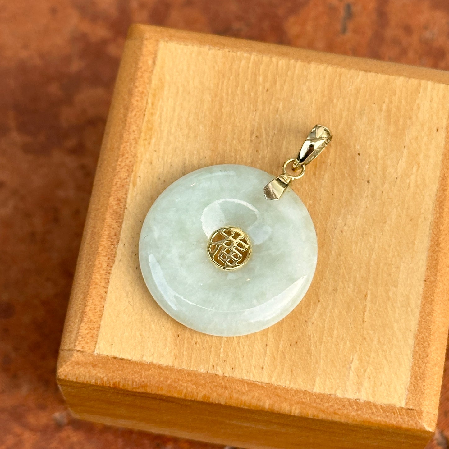 Estate 14KT Yellow Gold Genuine Celadon Color Jade Good Luck and Happiness Pendant