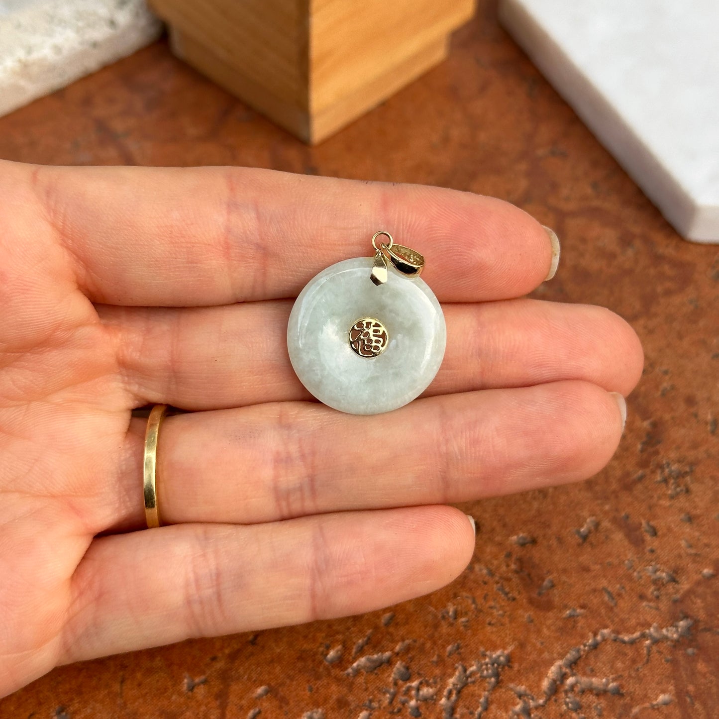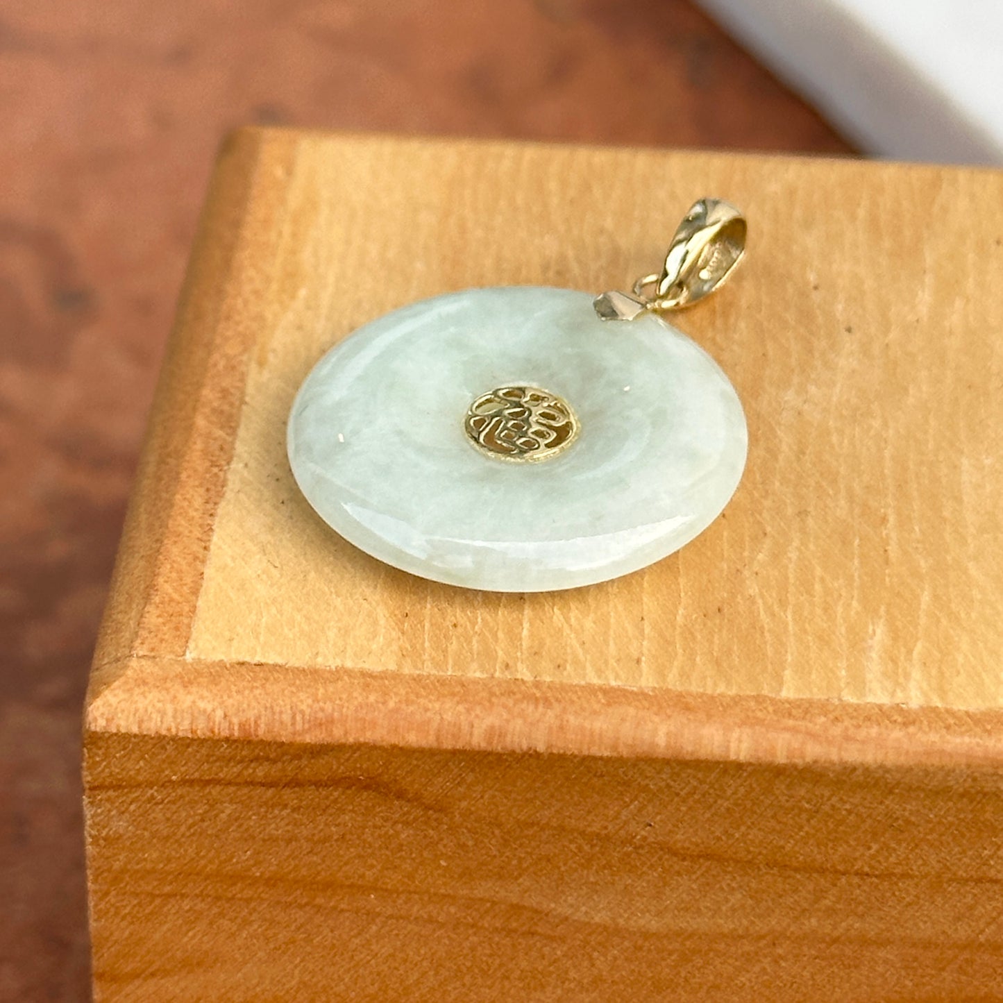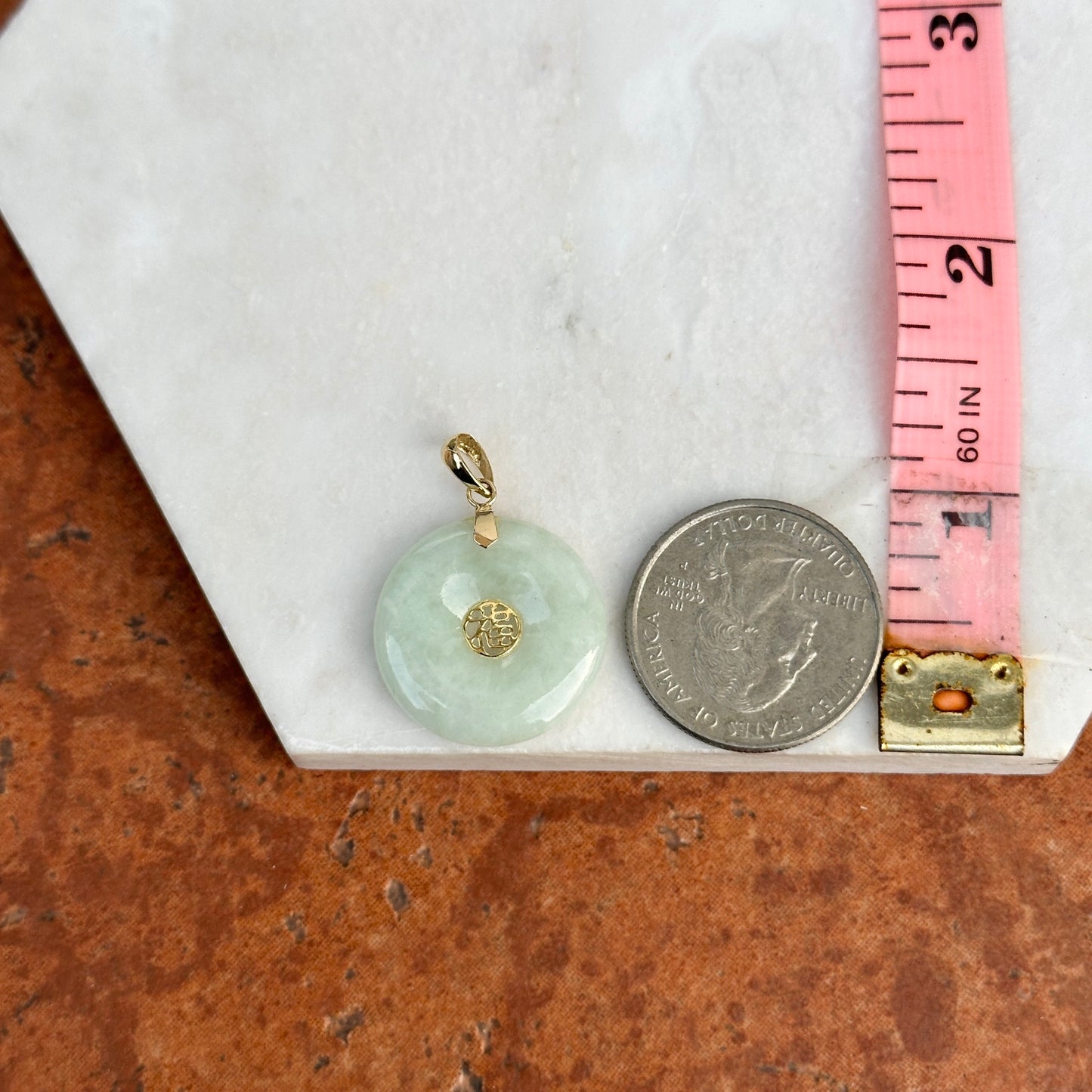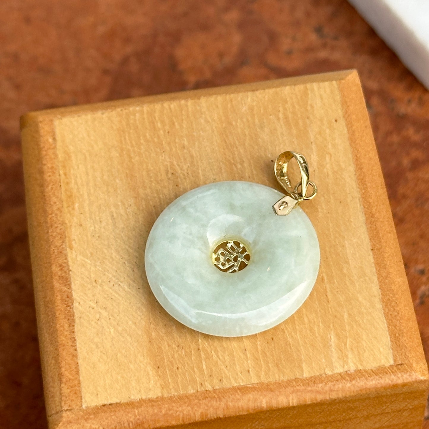 Estate 14KT Yellow Gold Genuine Celadon Color Jade Good Luck and Happiness Pendant