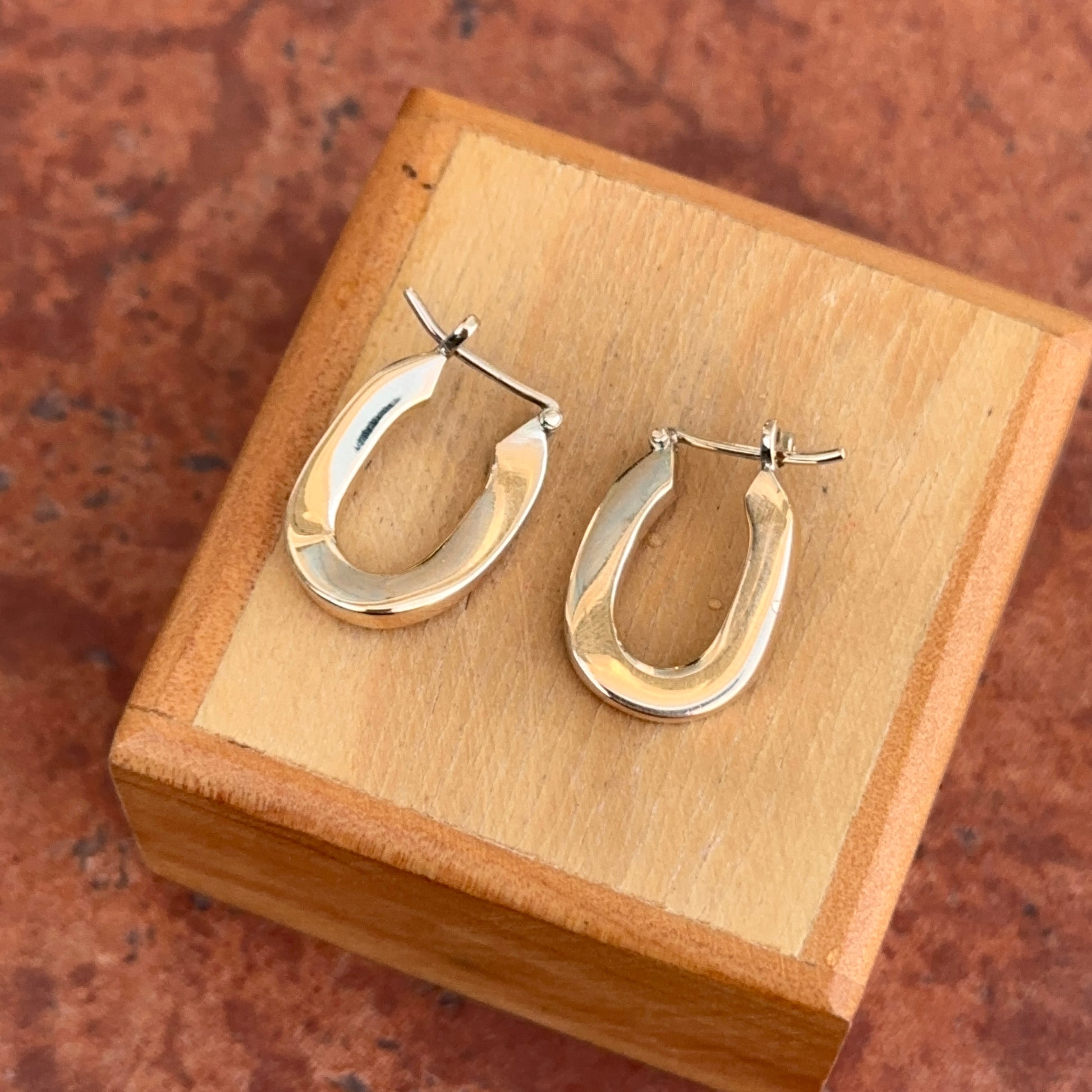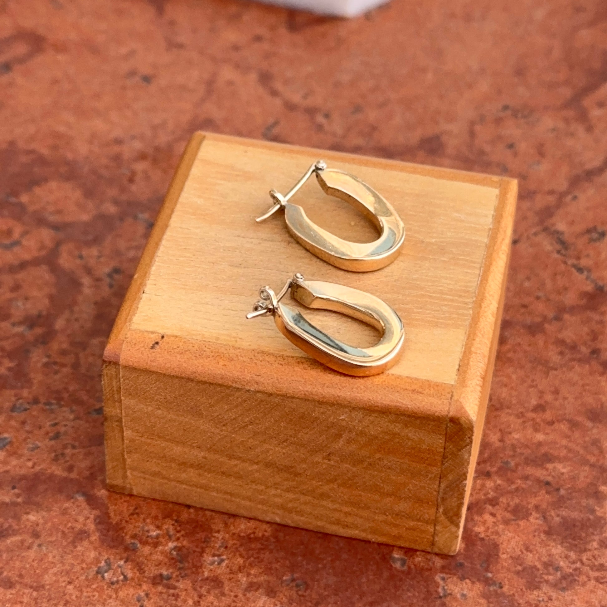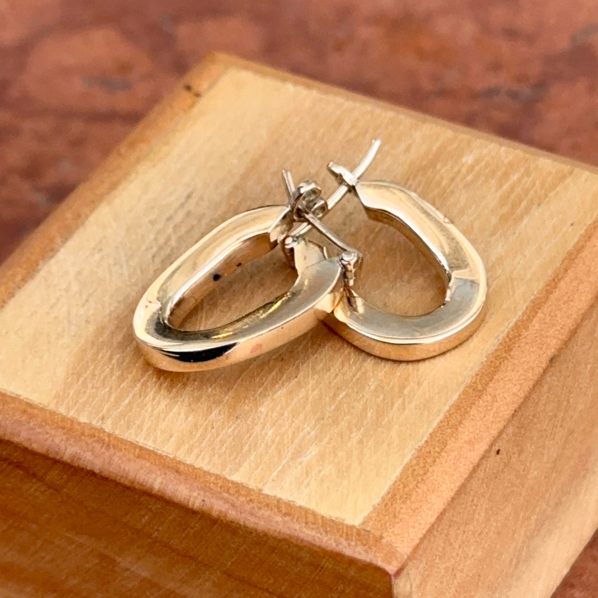 Estate/ Vintage Handmade Solid 14KT Yellow Gold Shiny-Finish Wavy Squared Hoop Small Earrings