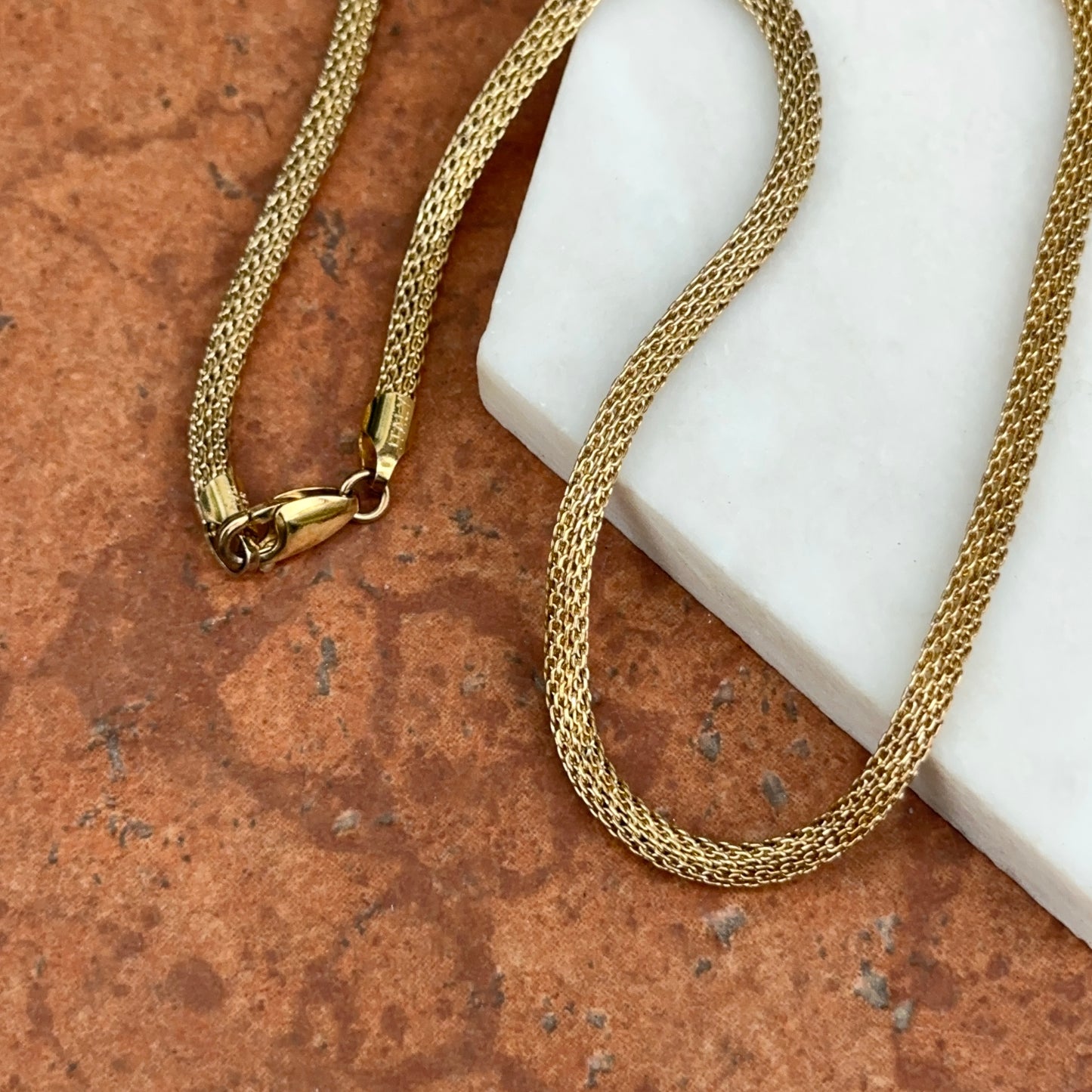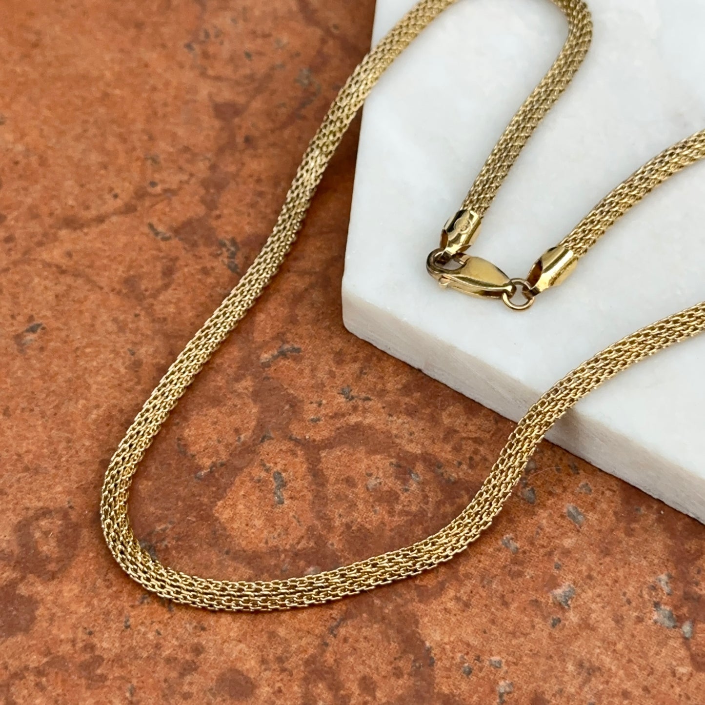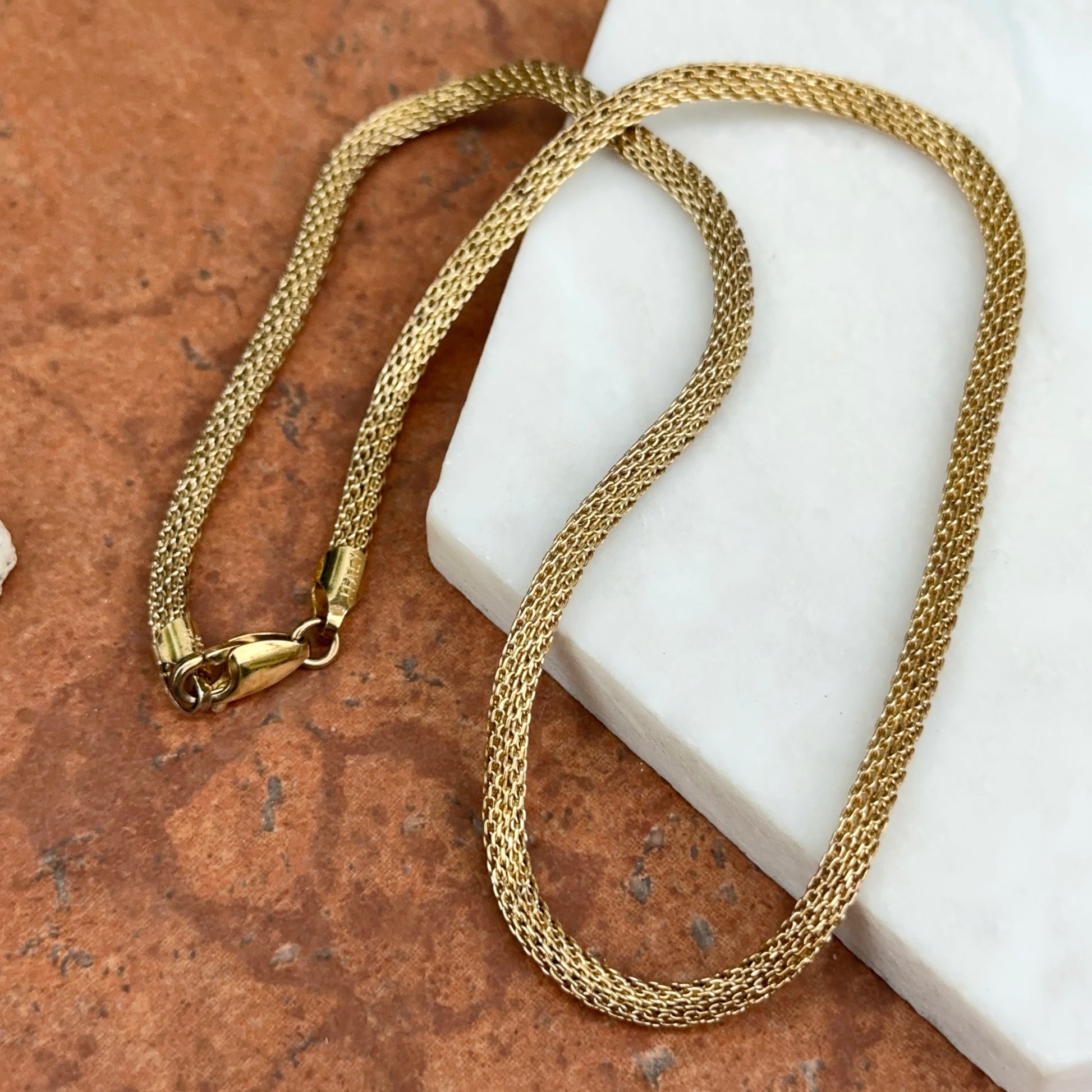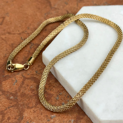 Gold plated sterling silver round mesh weave chain link necklace