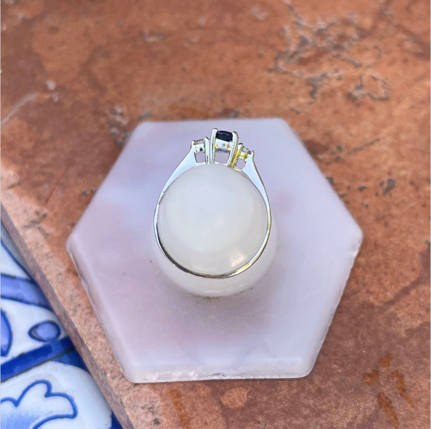 Estate/ Vintage Polished Platinum Oval-Cut Dark Blue Sapphire + Diamond Accent Ring