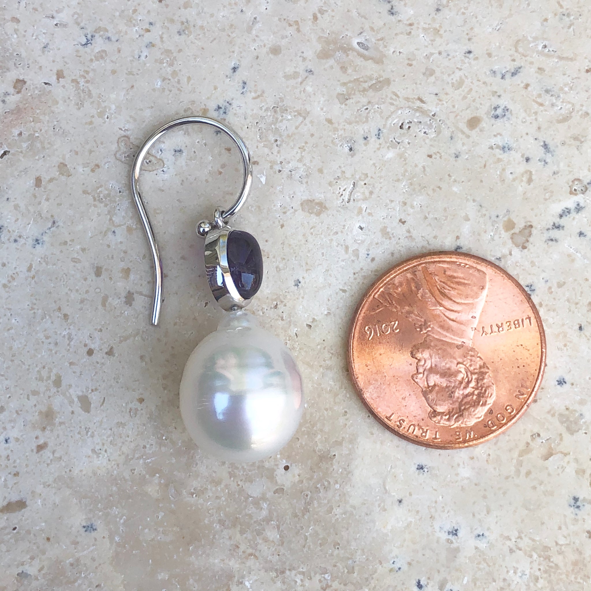 14KT White Gold Amethyst + 11mm Paspaley South Sea Pearl Hook Earrings