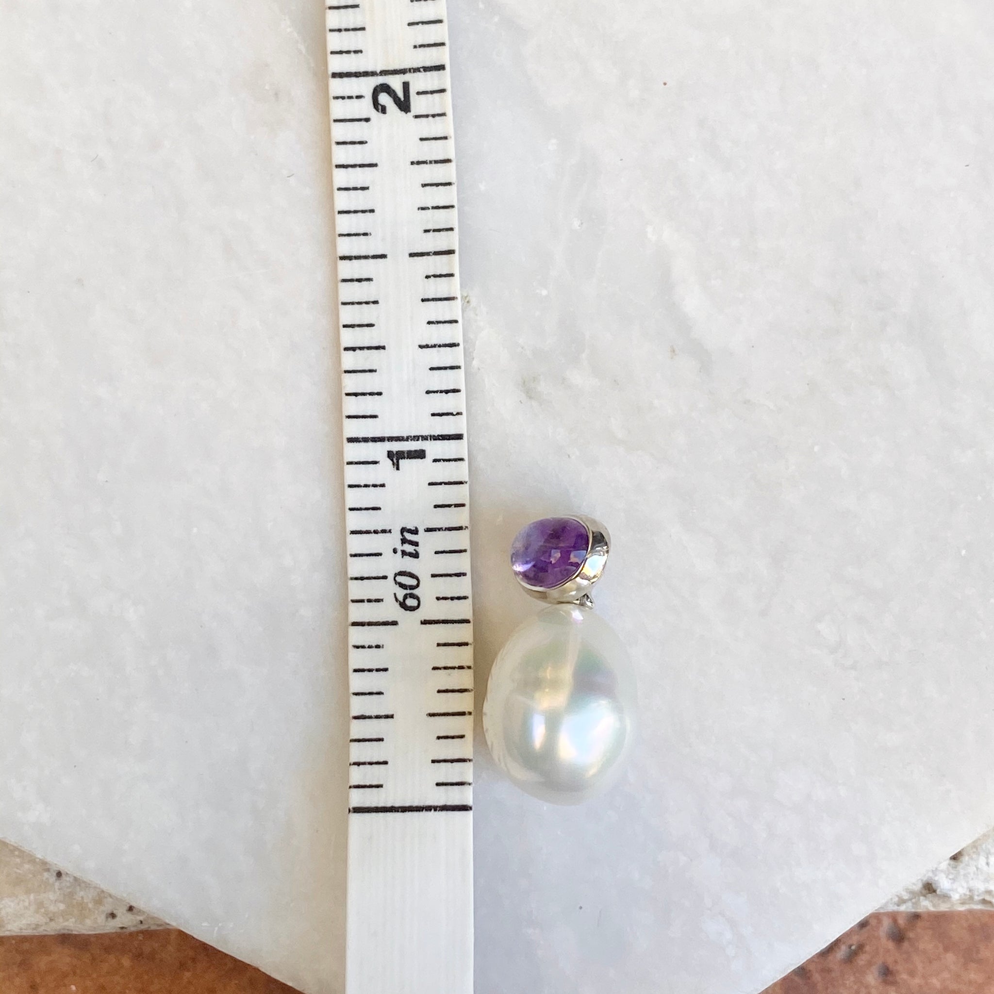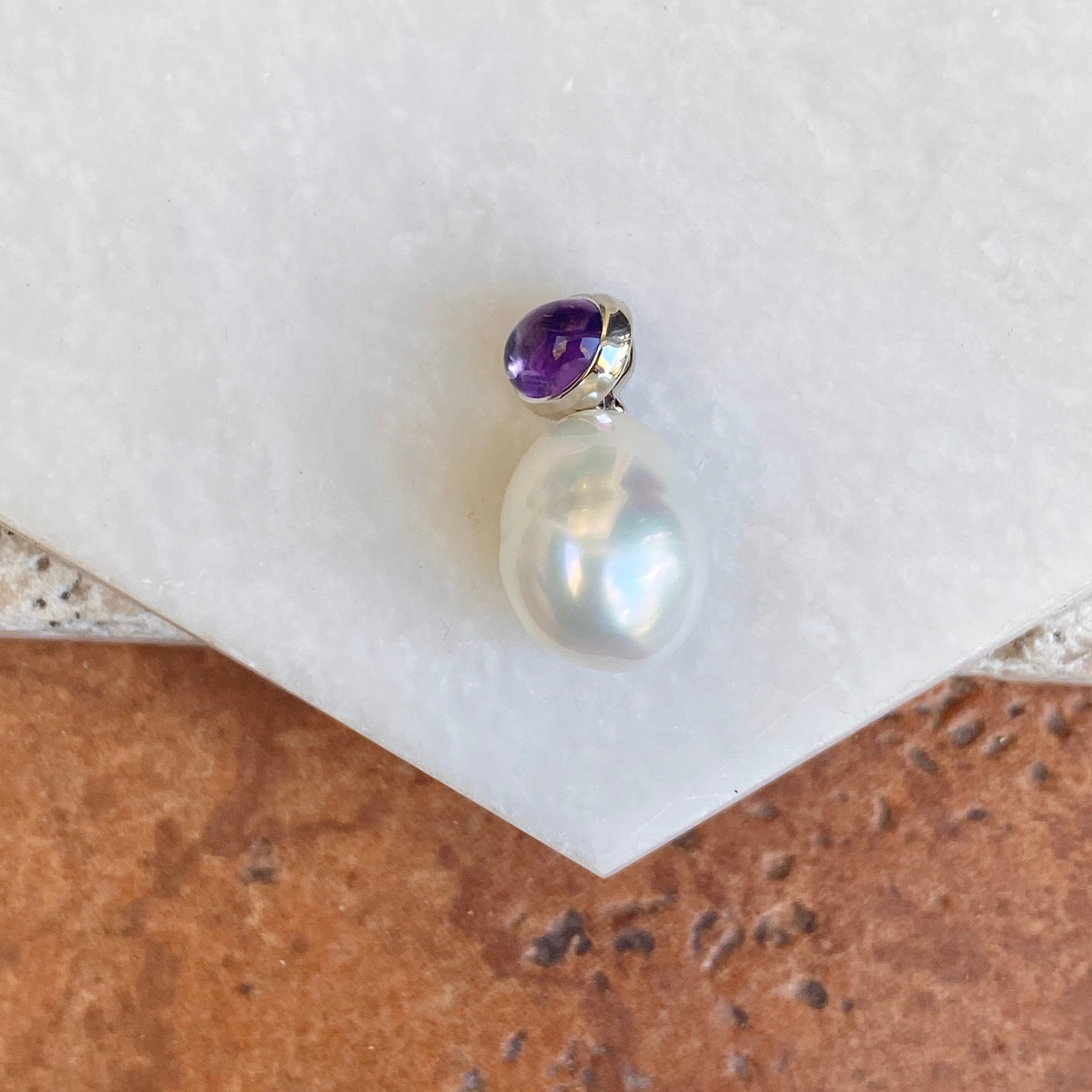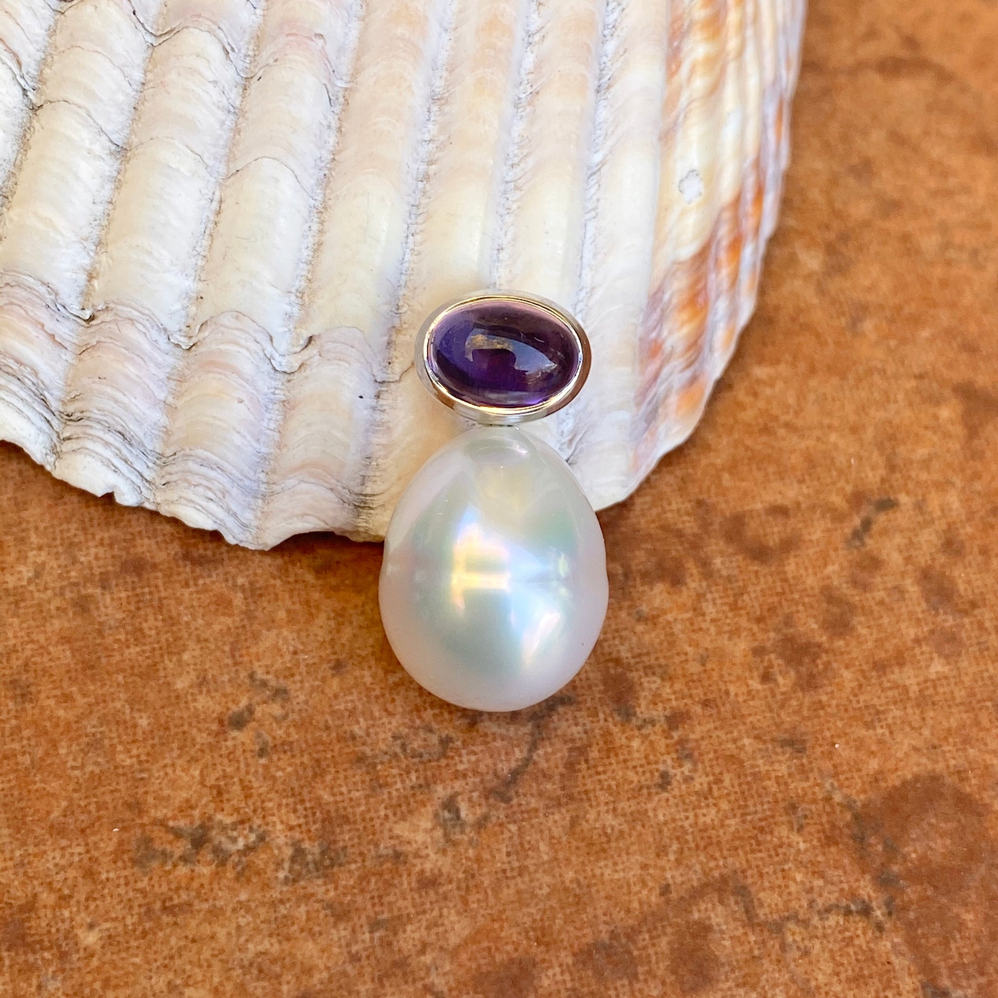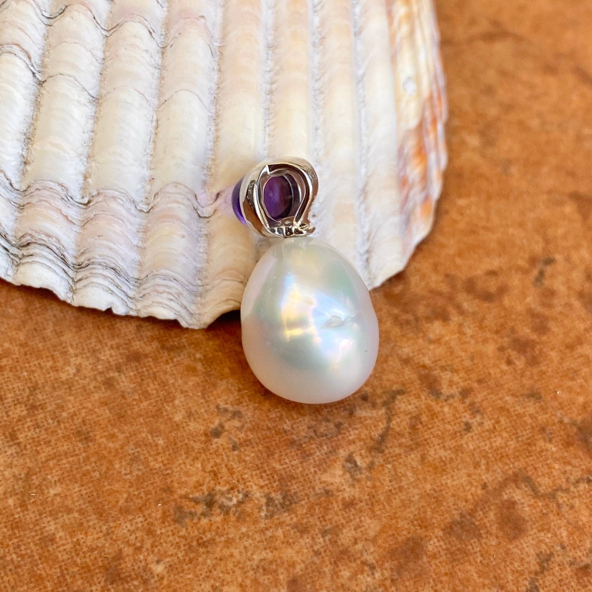 14KT White Gold Cabochon Amethyst + 11mm Paspaley South Sea Pearl Pendant Slide #1