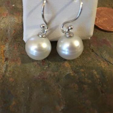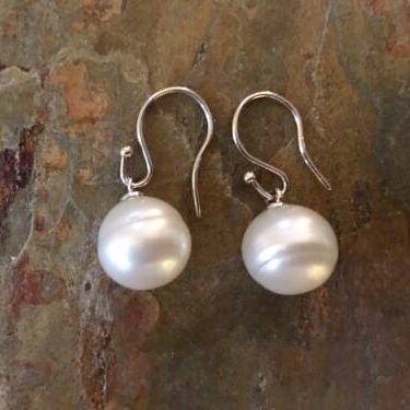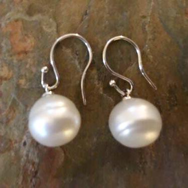 14KT White Gold 12mm Genuine Paspaley South Sea Pearl Shepherd Hook Earrings