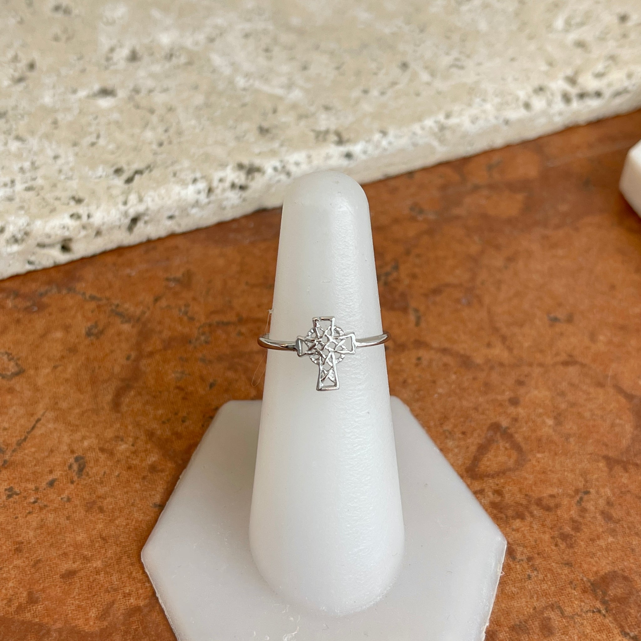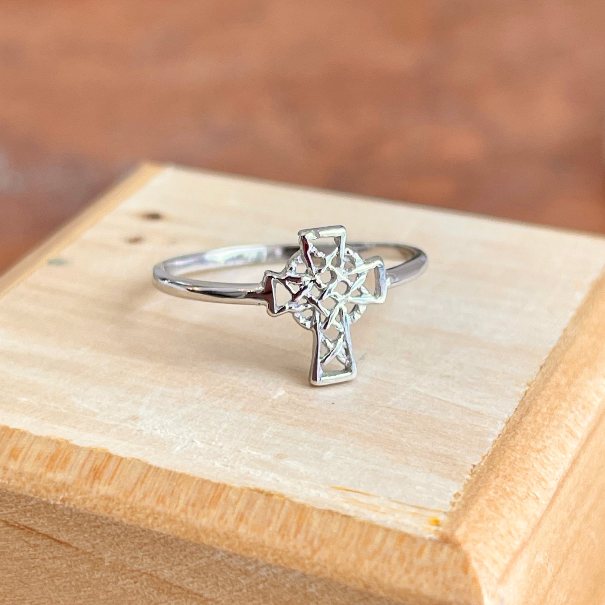 14KT White Gold Celtic Cross Open Weave Style Ring