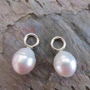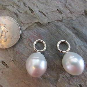 14KT white gold Paspaley South Sea Pearl round earring charms. Perfect to add onto hoop earrings!