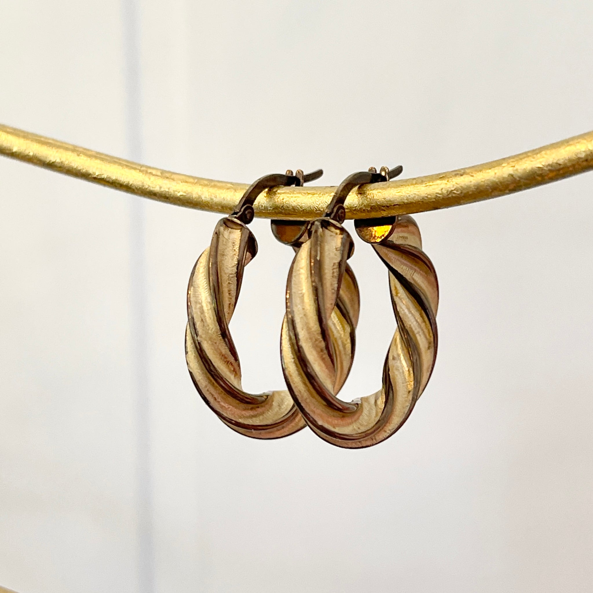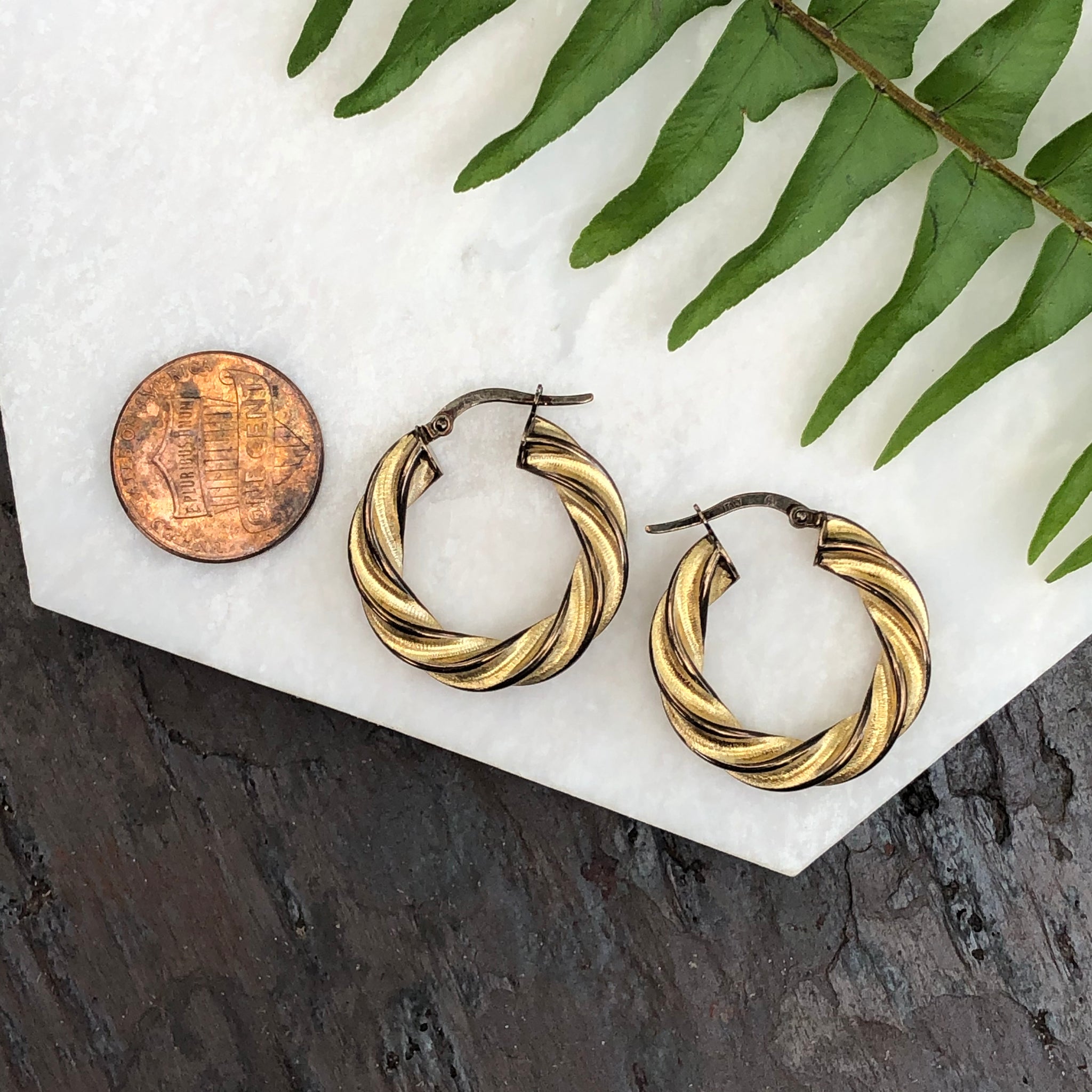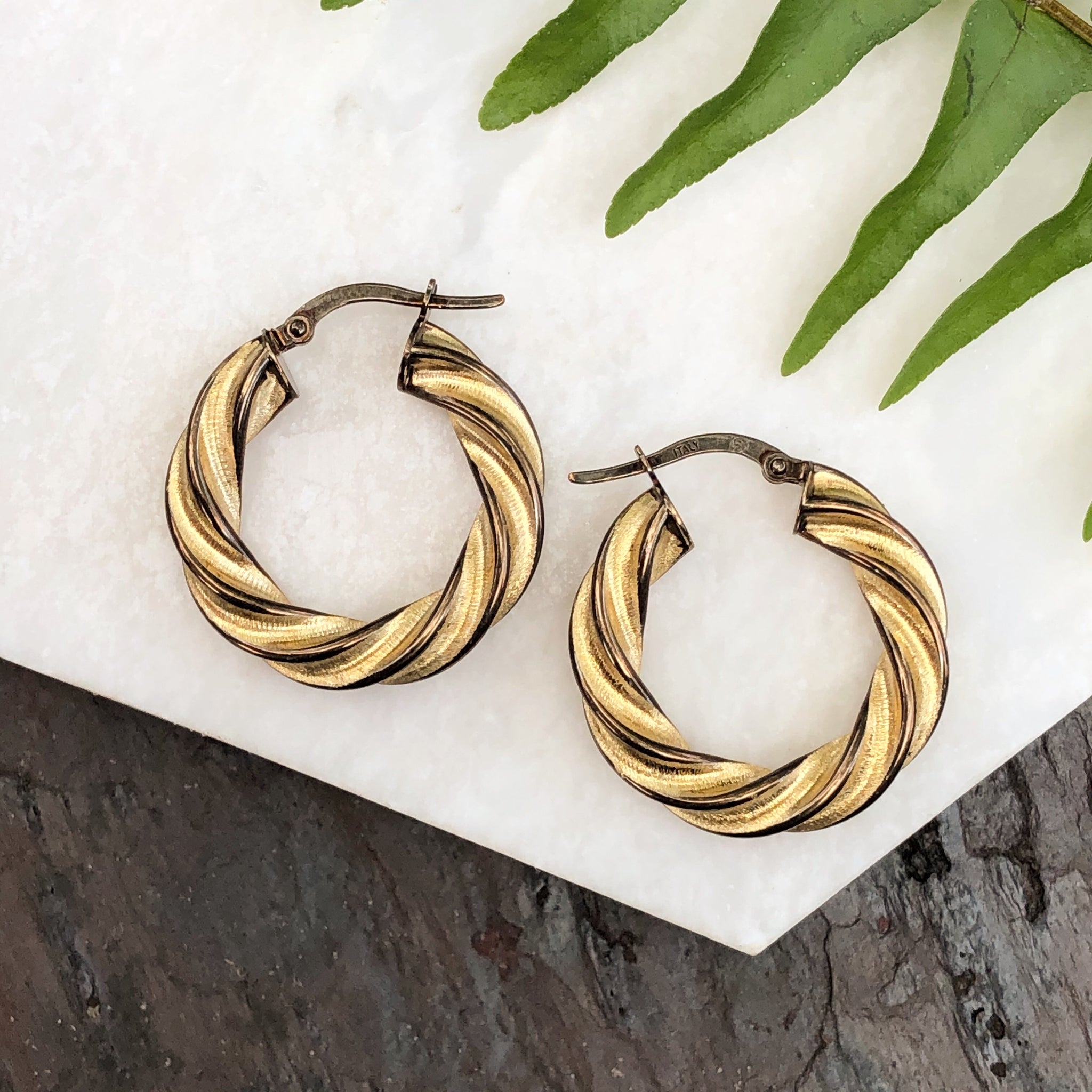 Estate 14KT Yellow Gold + Chocolate Gold Twist Hoop Earrings 22mm