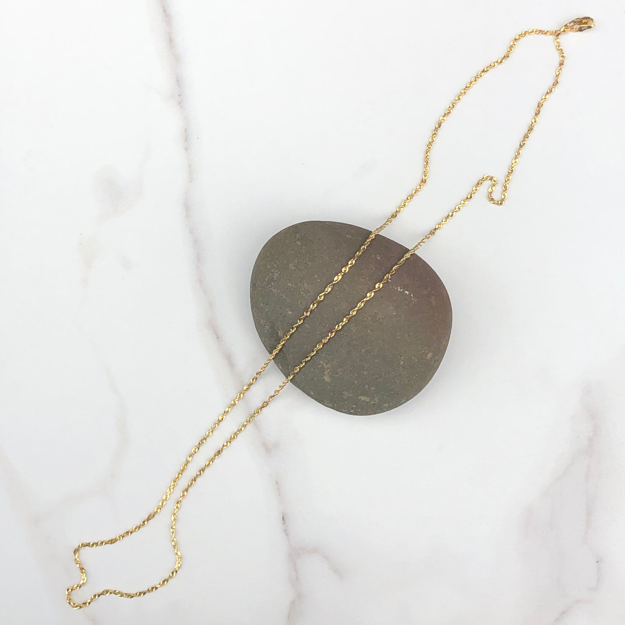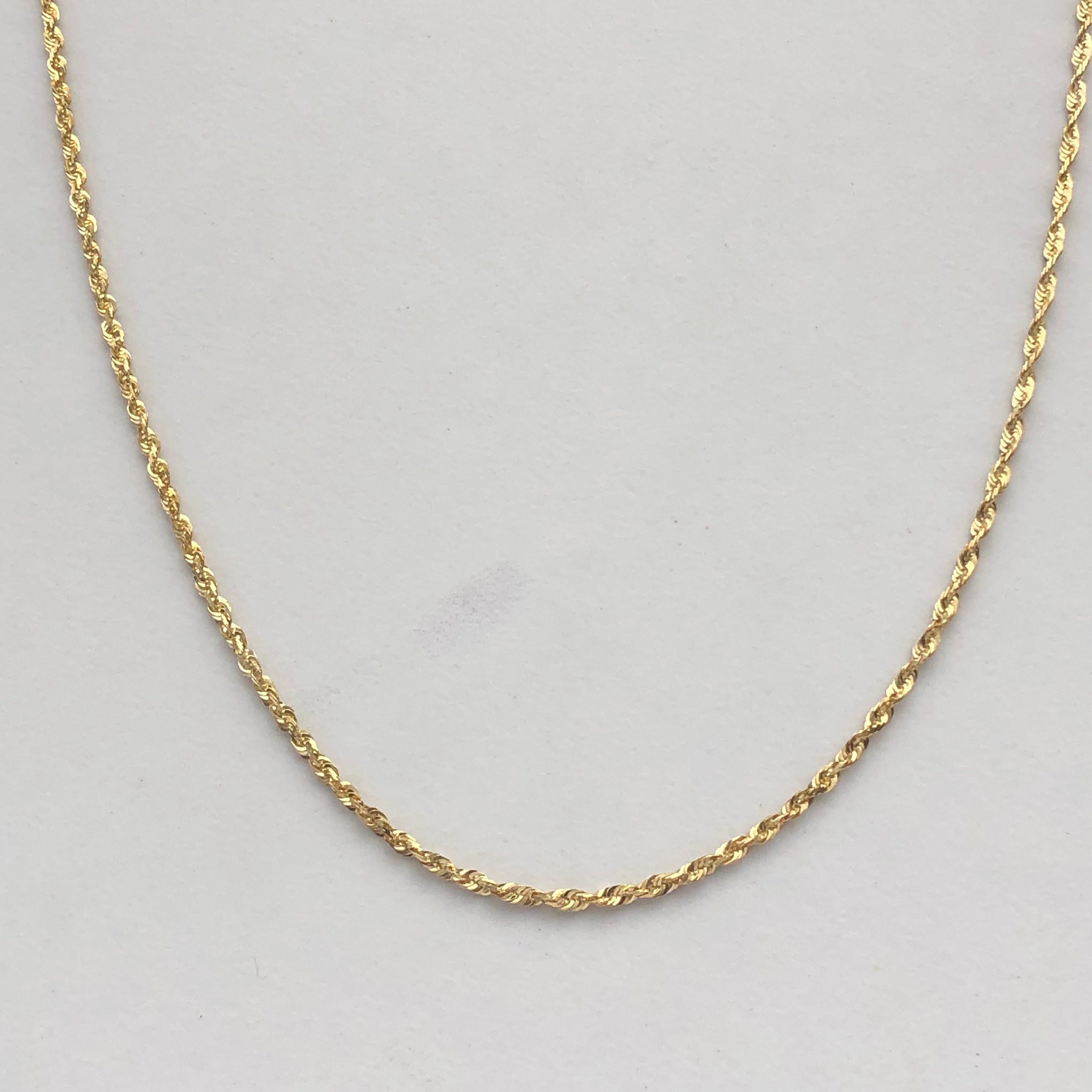 10KT yellow gold diamond-cut rope chain necklace. Beautiful, hard-to-find, unisex rope chain is perfect to wear by itself or pair with a pendant!