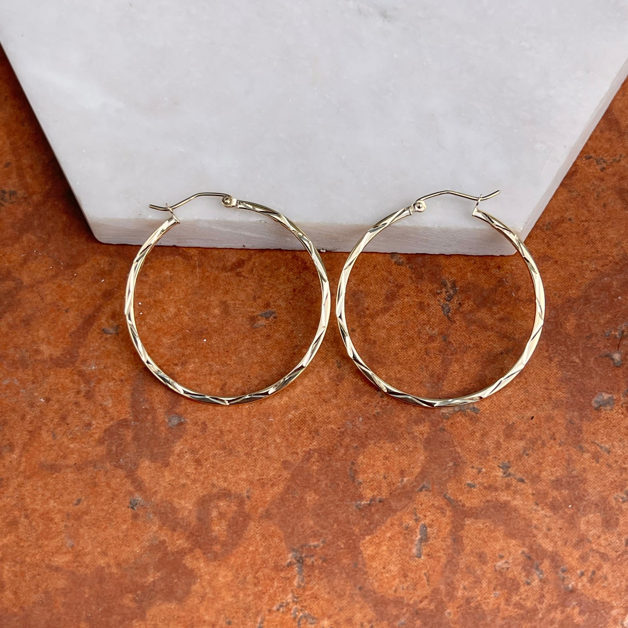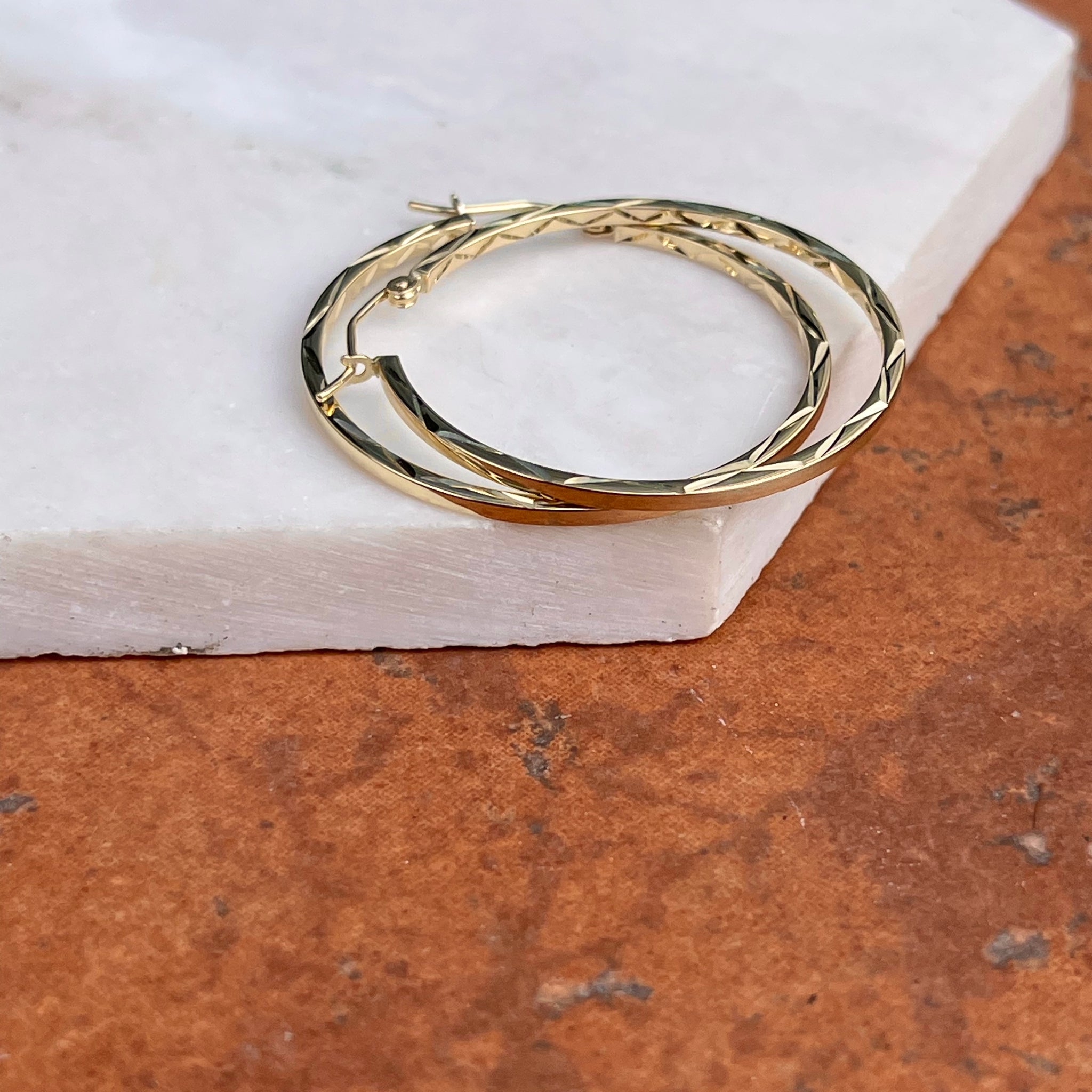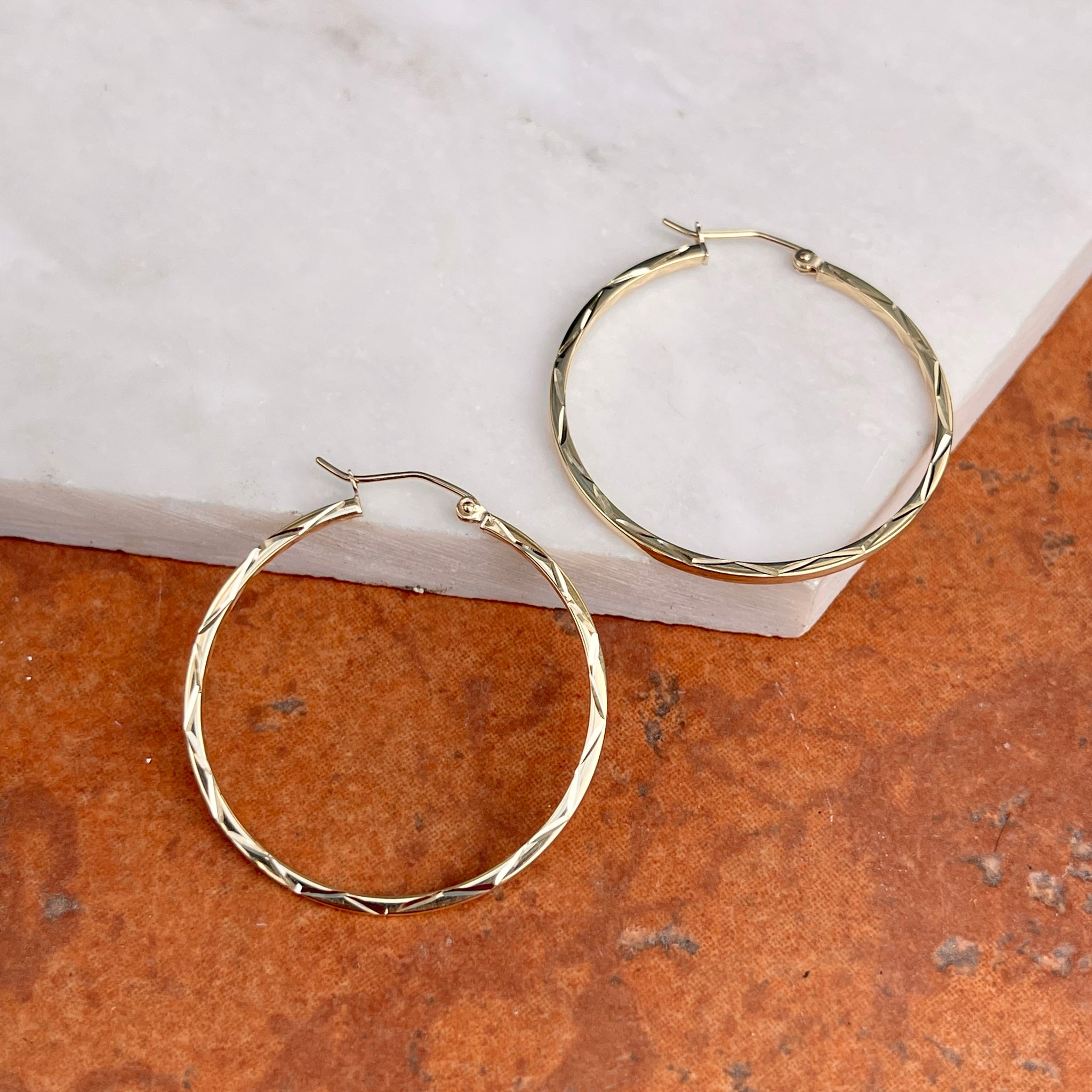 10KT Yellow Gold Diamond-Cut Squared Hoop Earrings 35mm