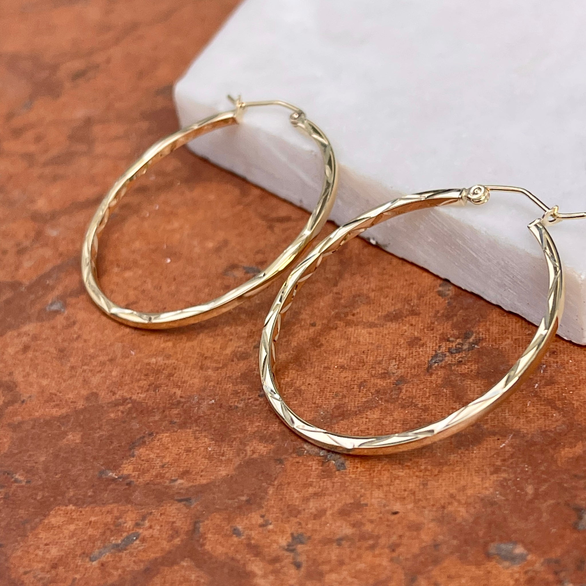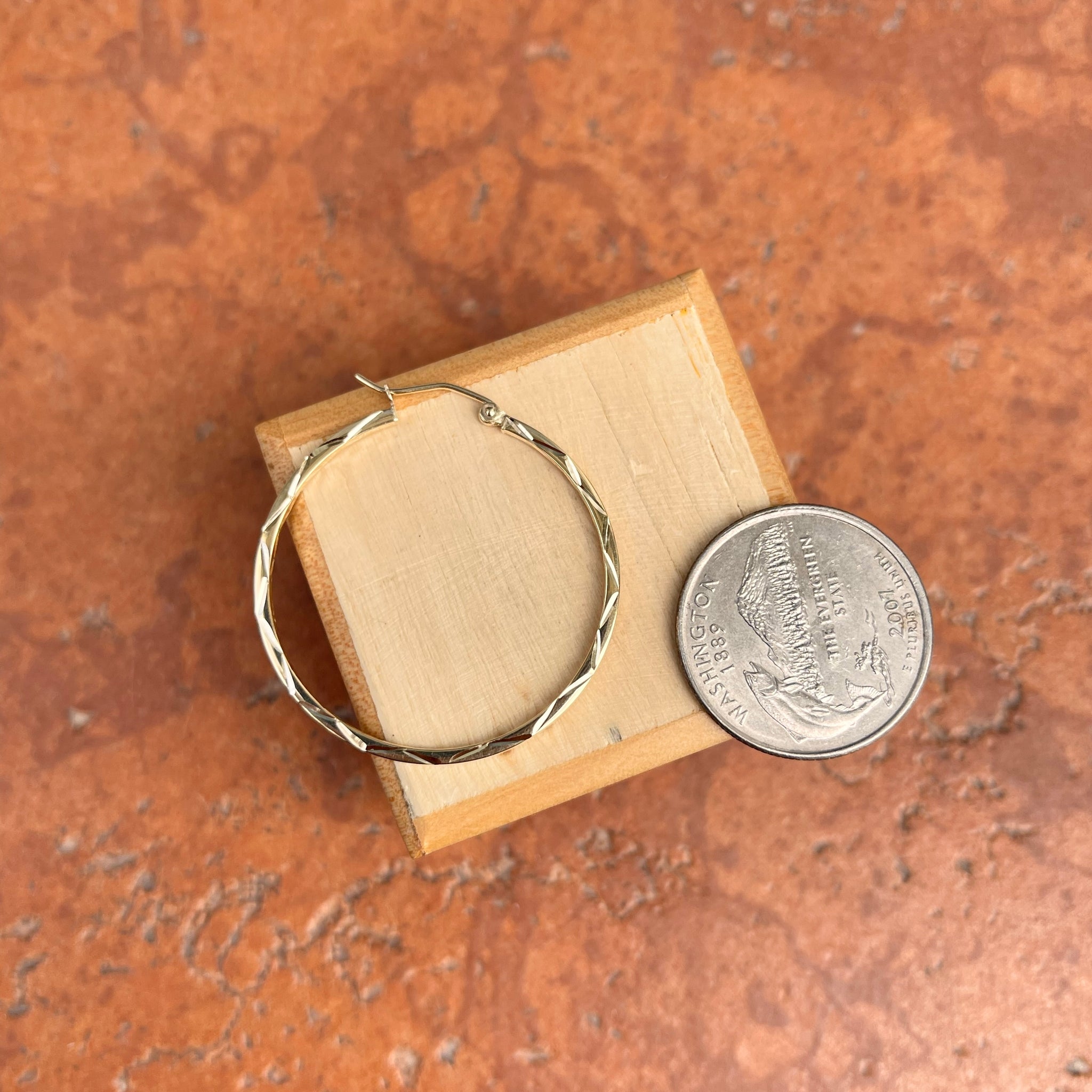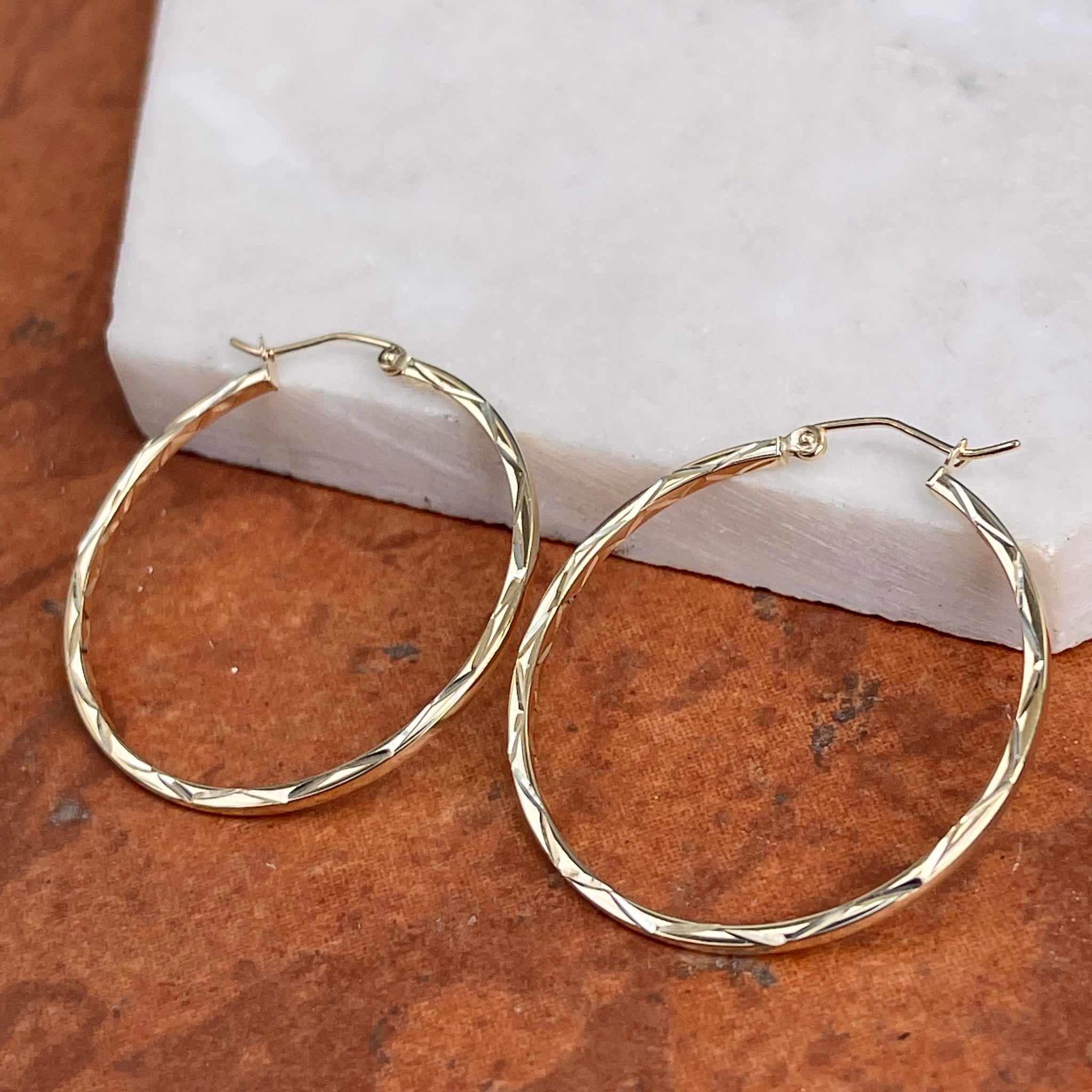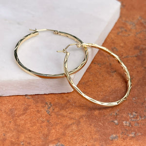 10KT Yellow Gold Diamond-Cut Squared Hoop Earrings 35mm