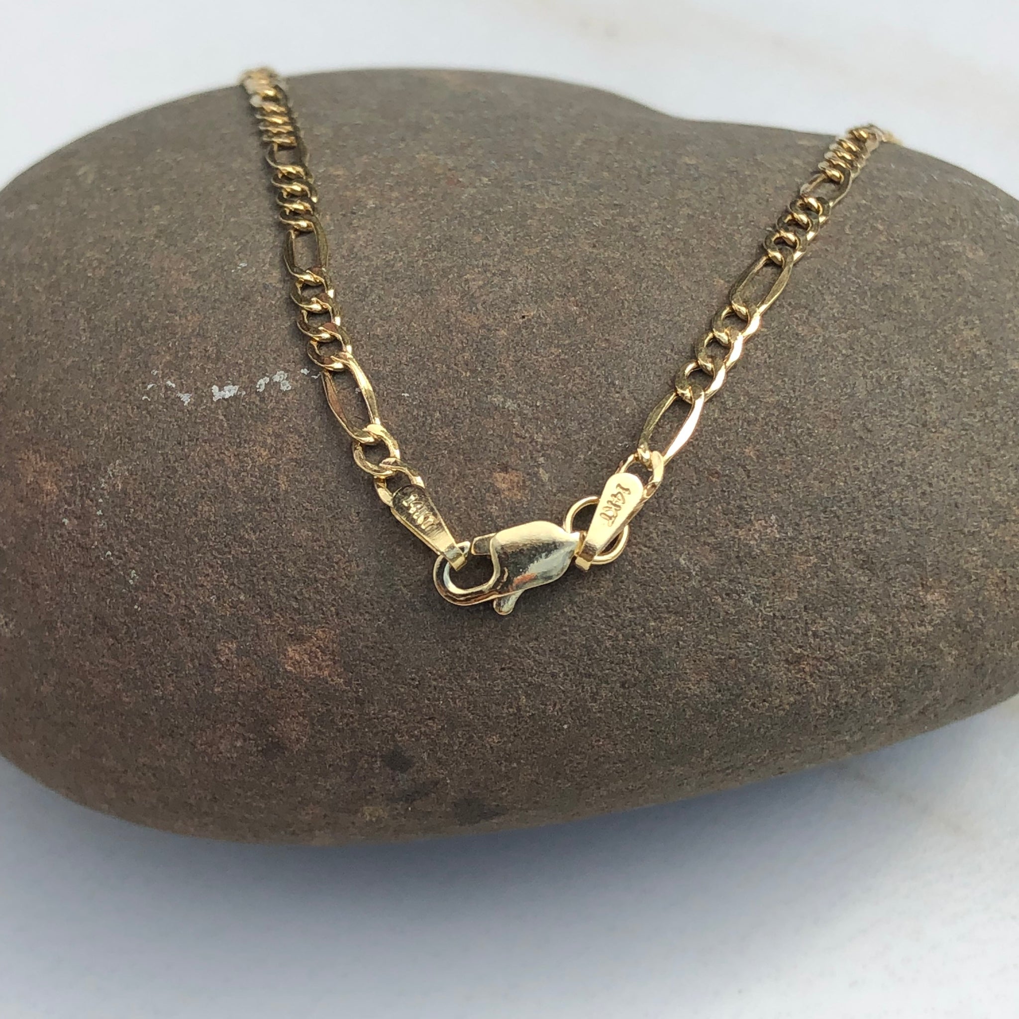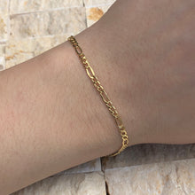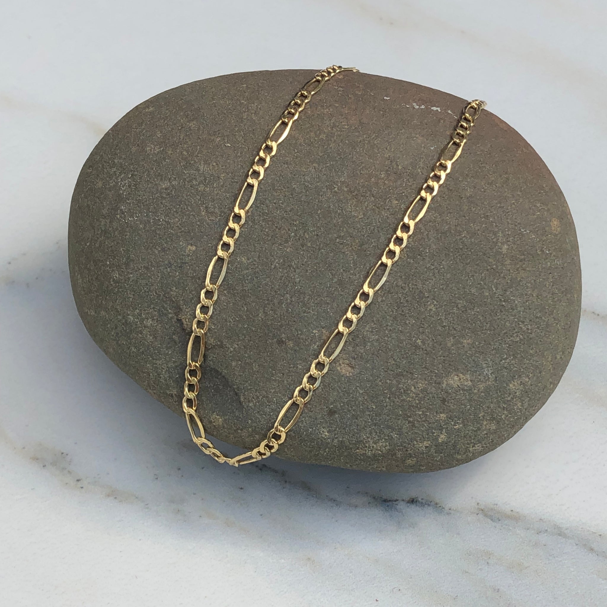 14KT yellow gold figaro chain link bracelet. A lightweight figaro style bracelet perfect for layering.