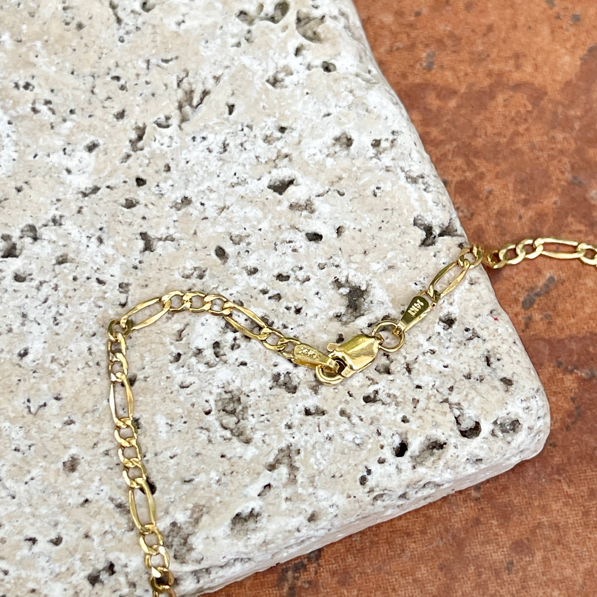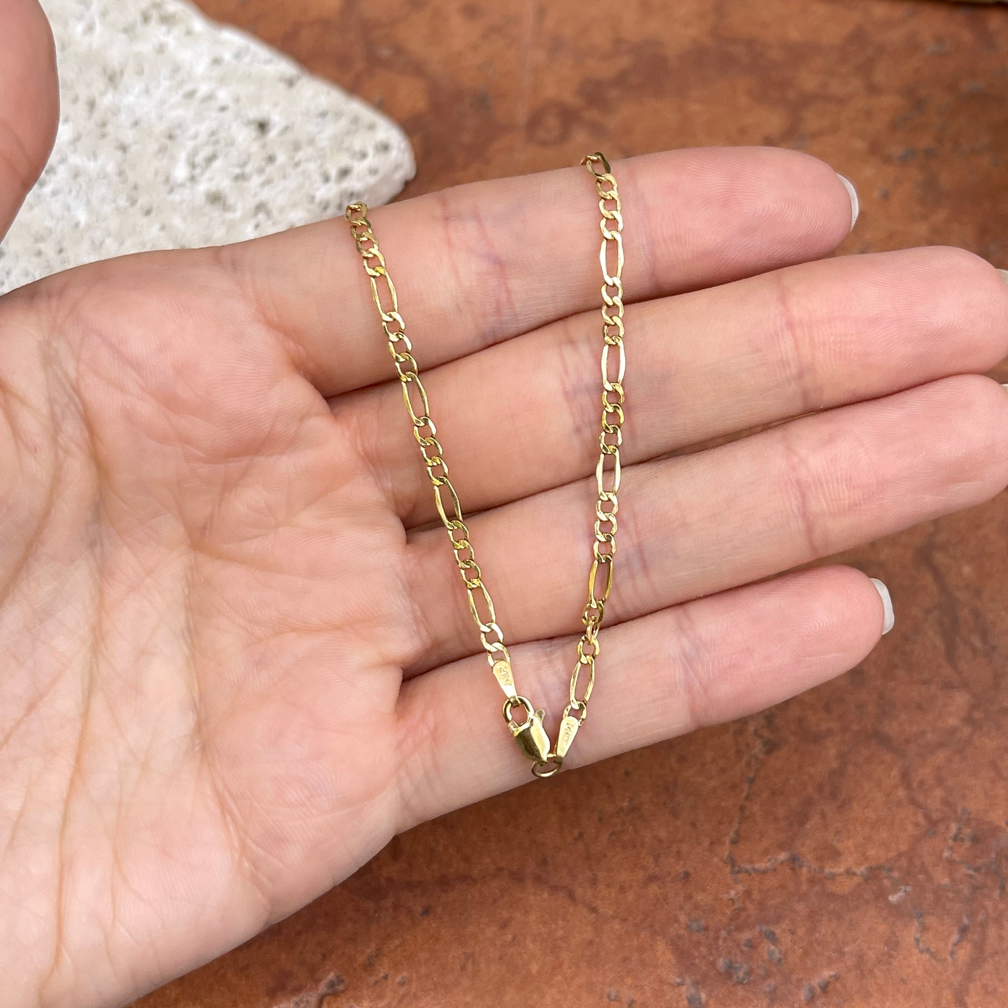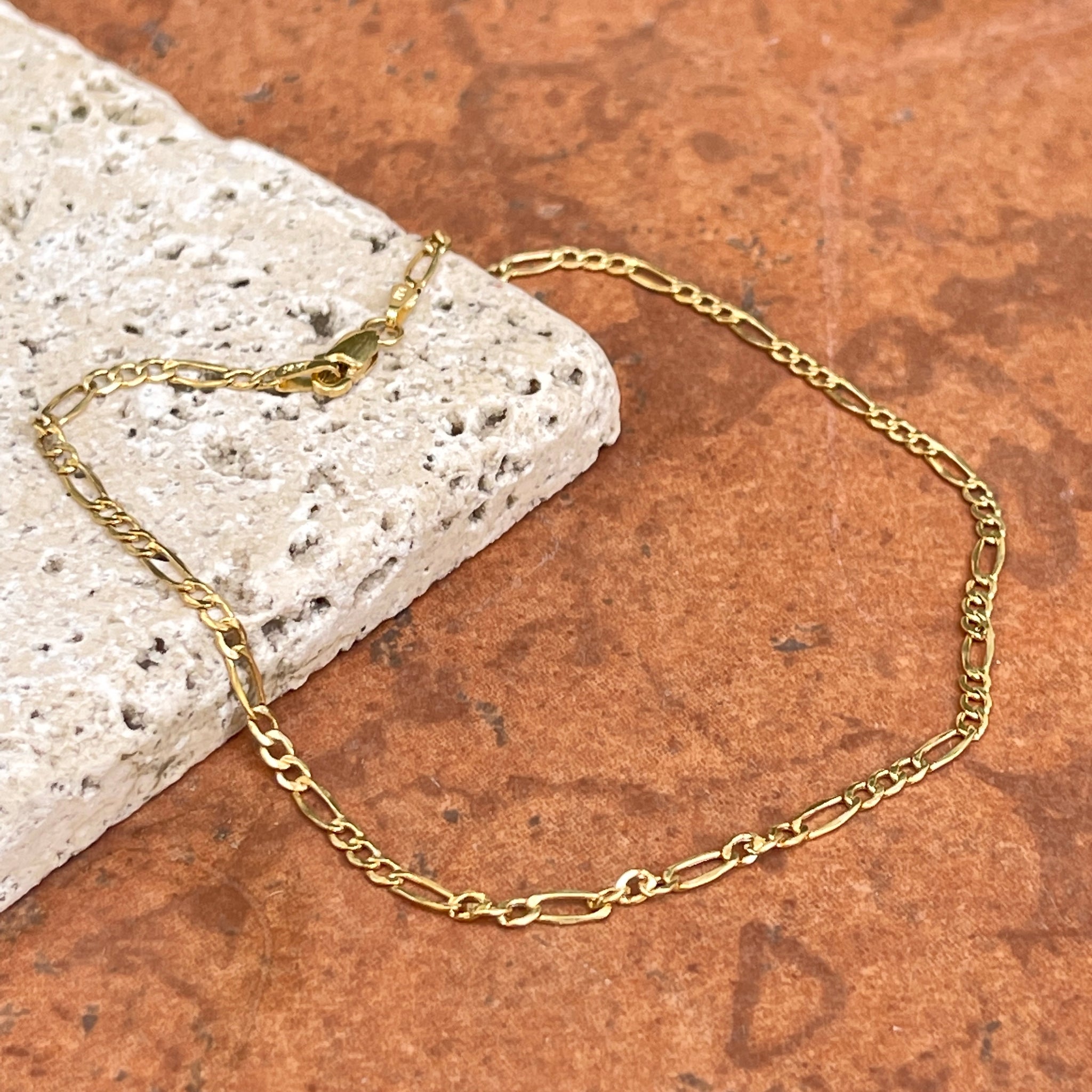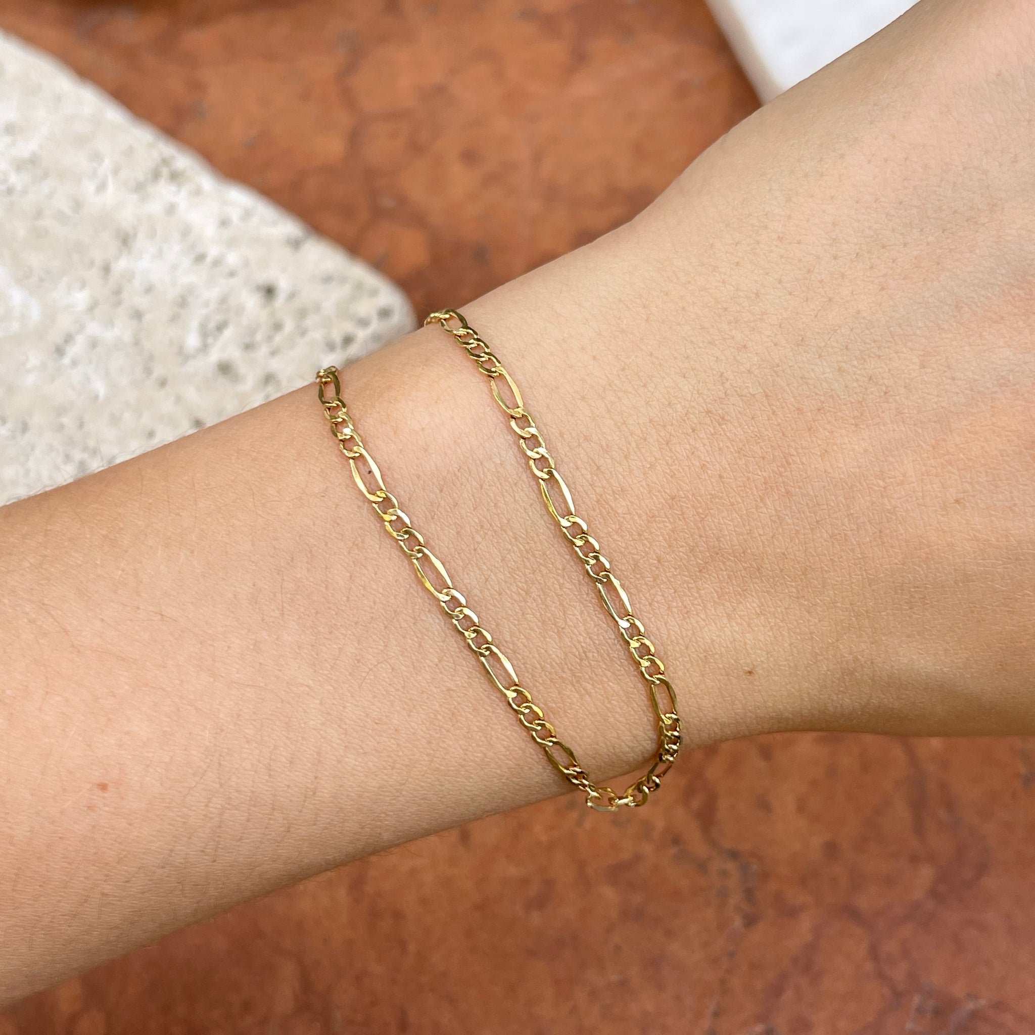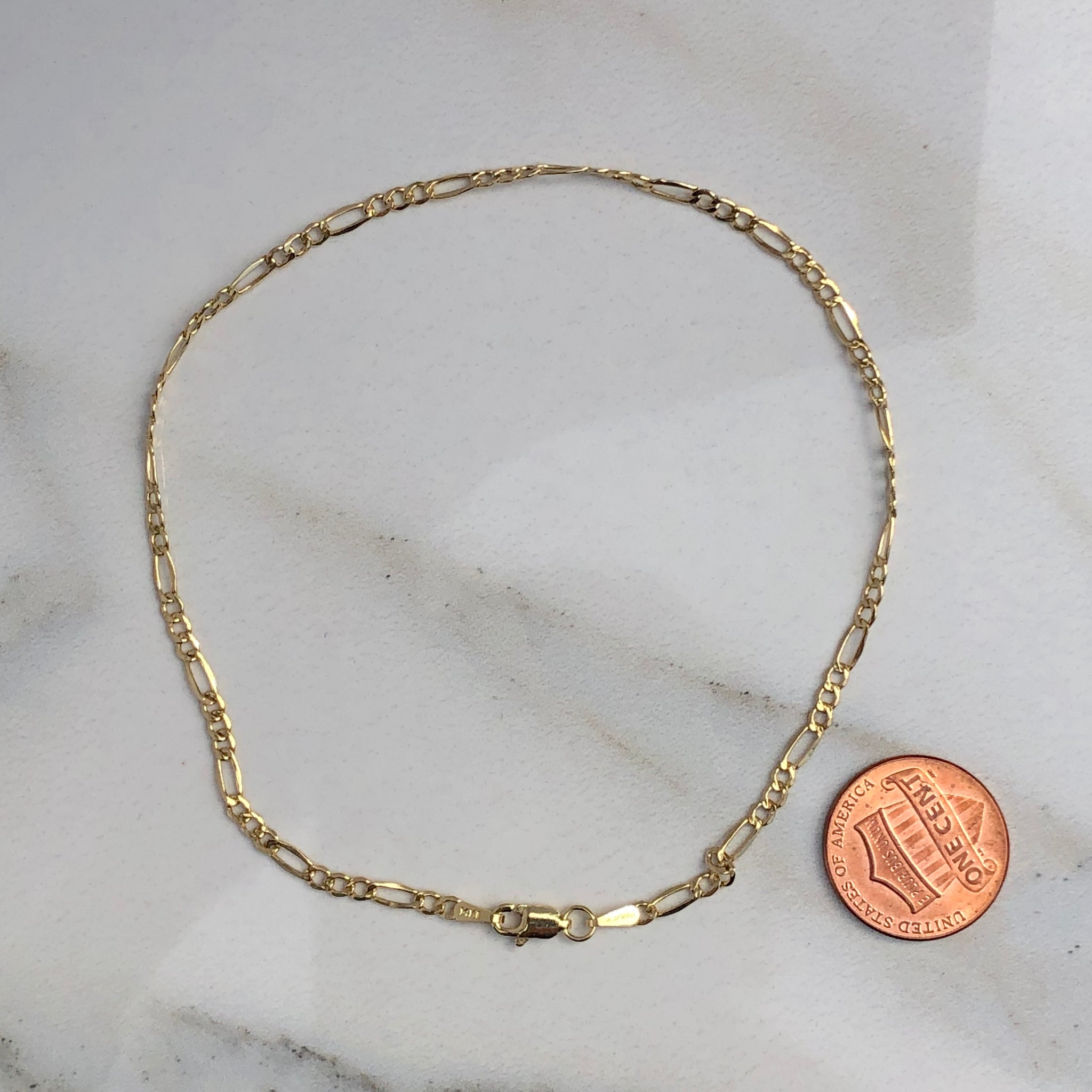 14KT Yellow Gold 2.5mm Figaro Chain Link Bracelet 10"