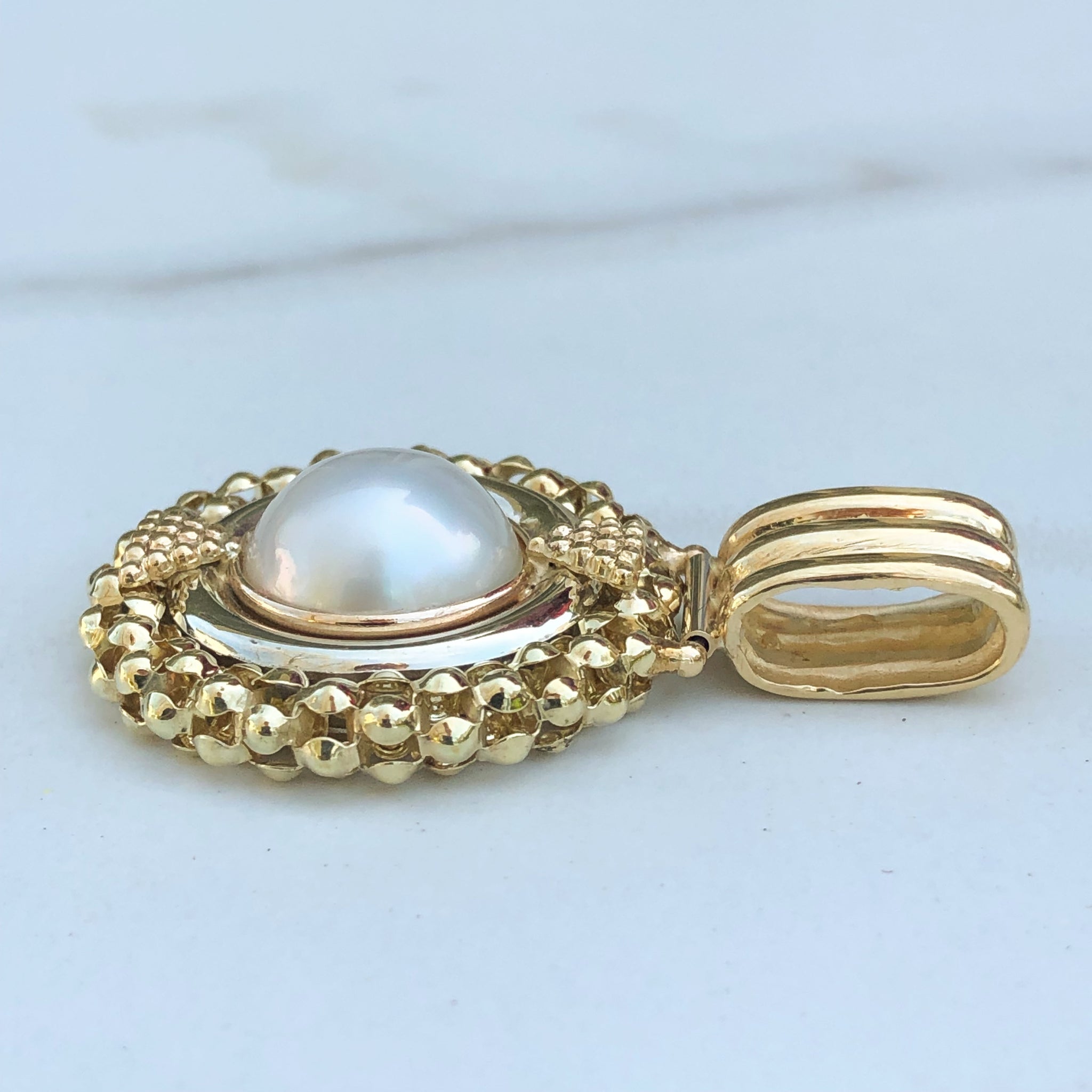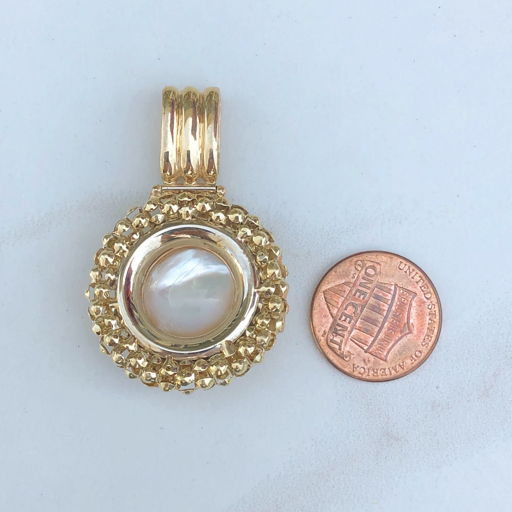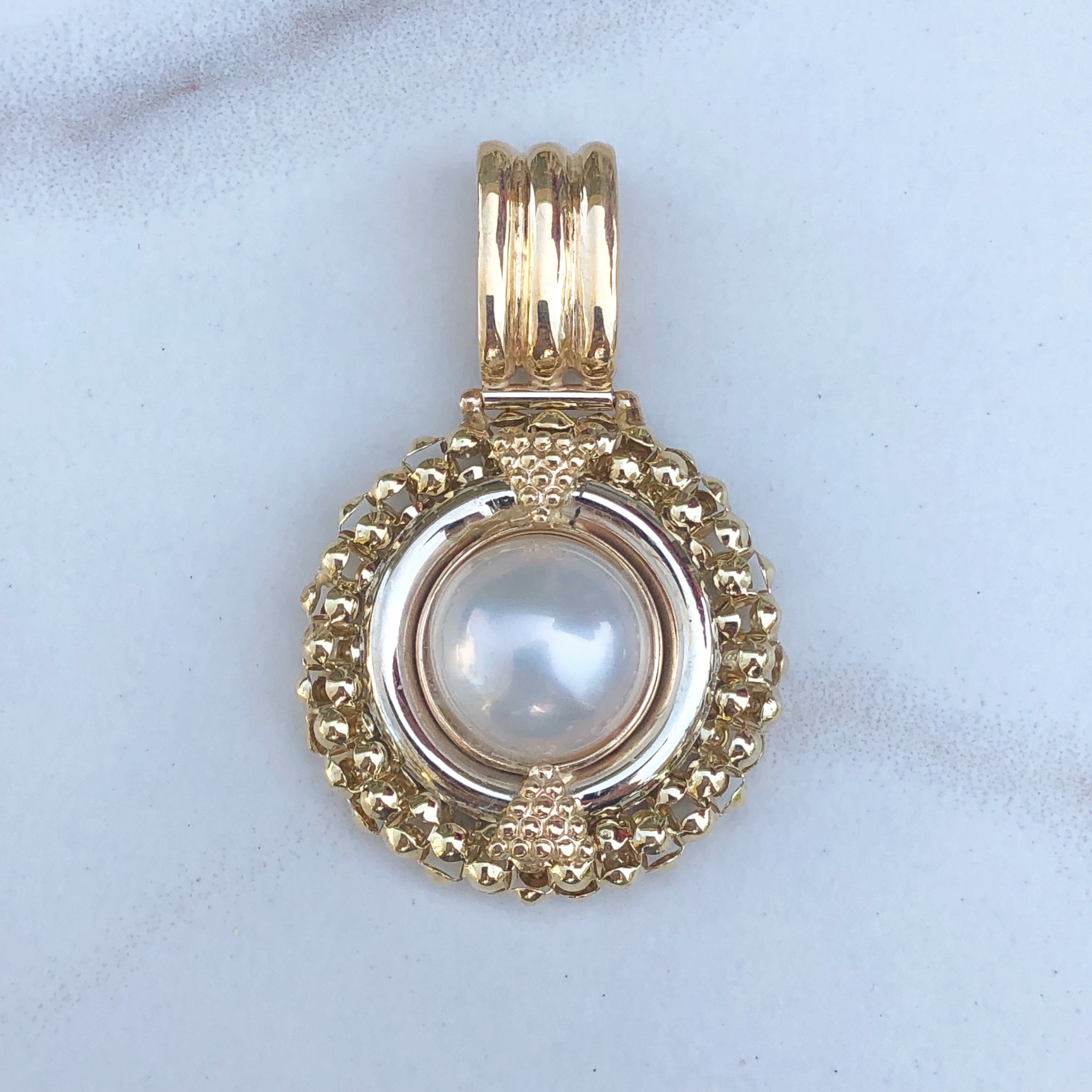 14KT Yellow Gold Mabe Pearl Popcorn Detailed Pendant Omega Slide
