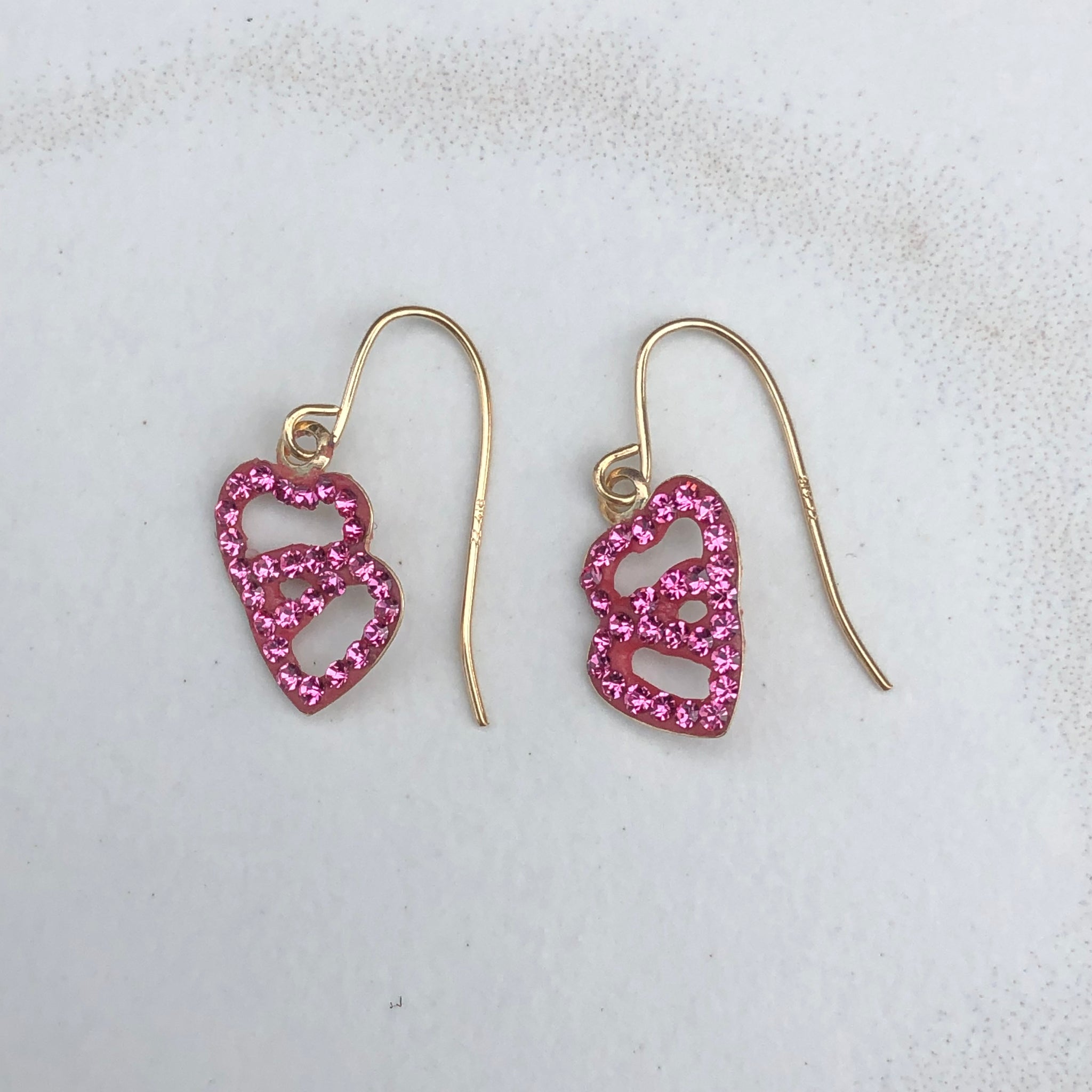 14KT Yellow Gold Pink Heart Crystal Euro Wire Earring