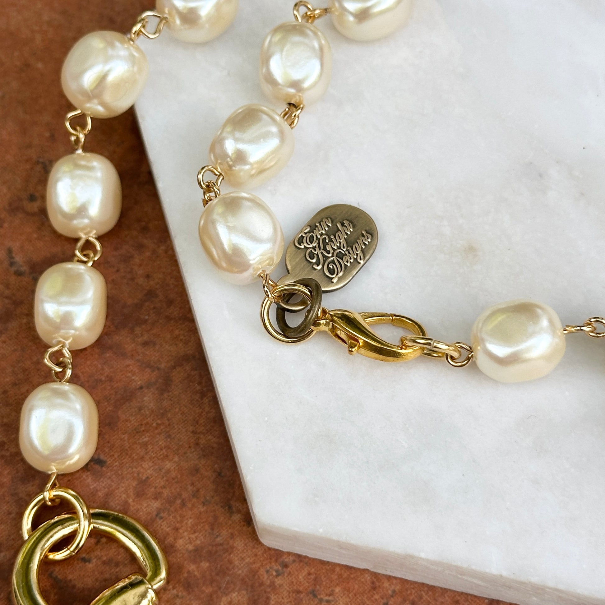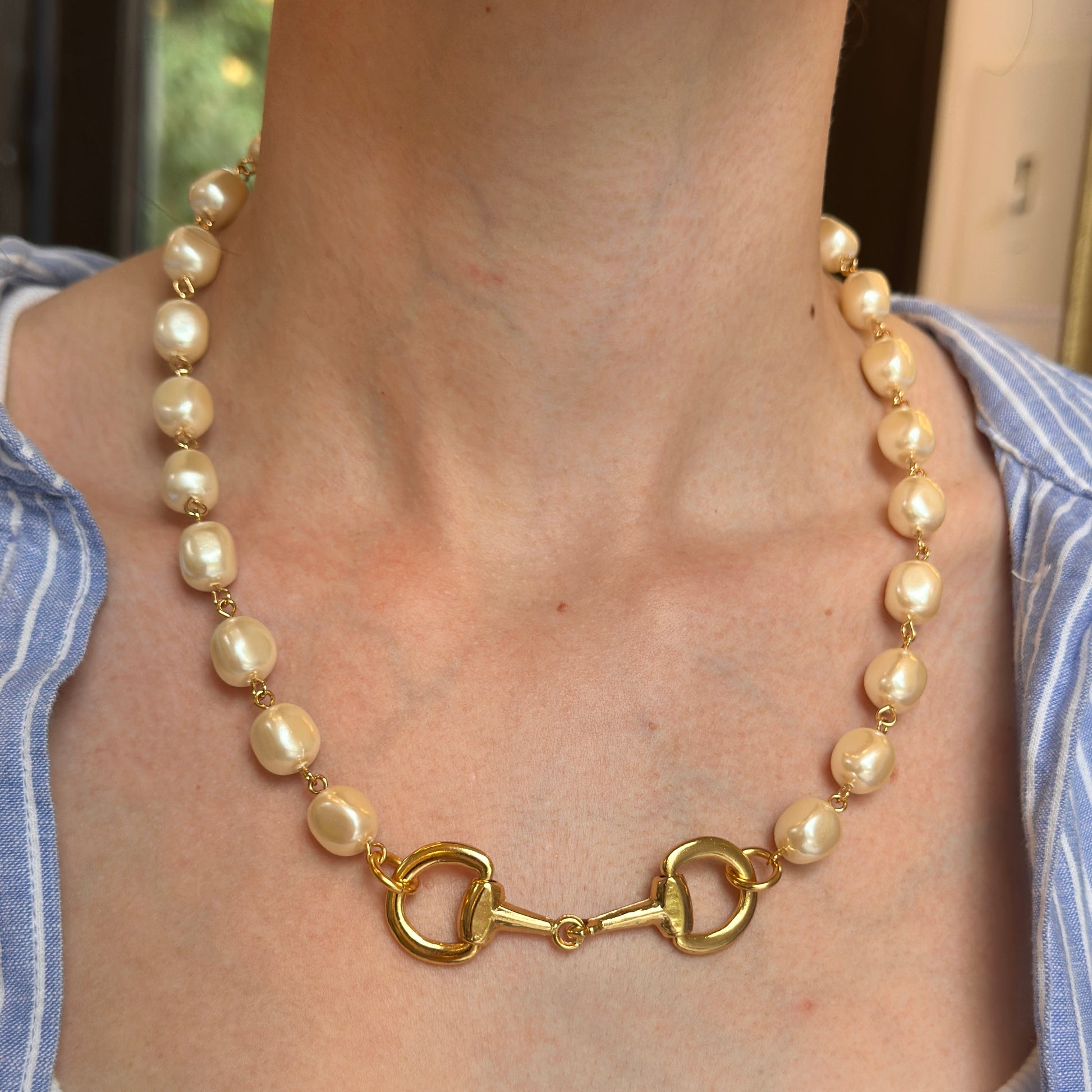 Yellow Gold-Plated Near Round Pearl Bead Horse Bit Necklace