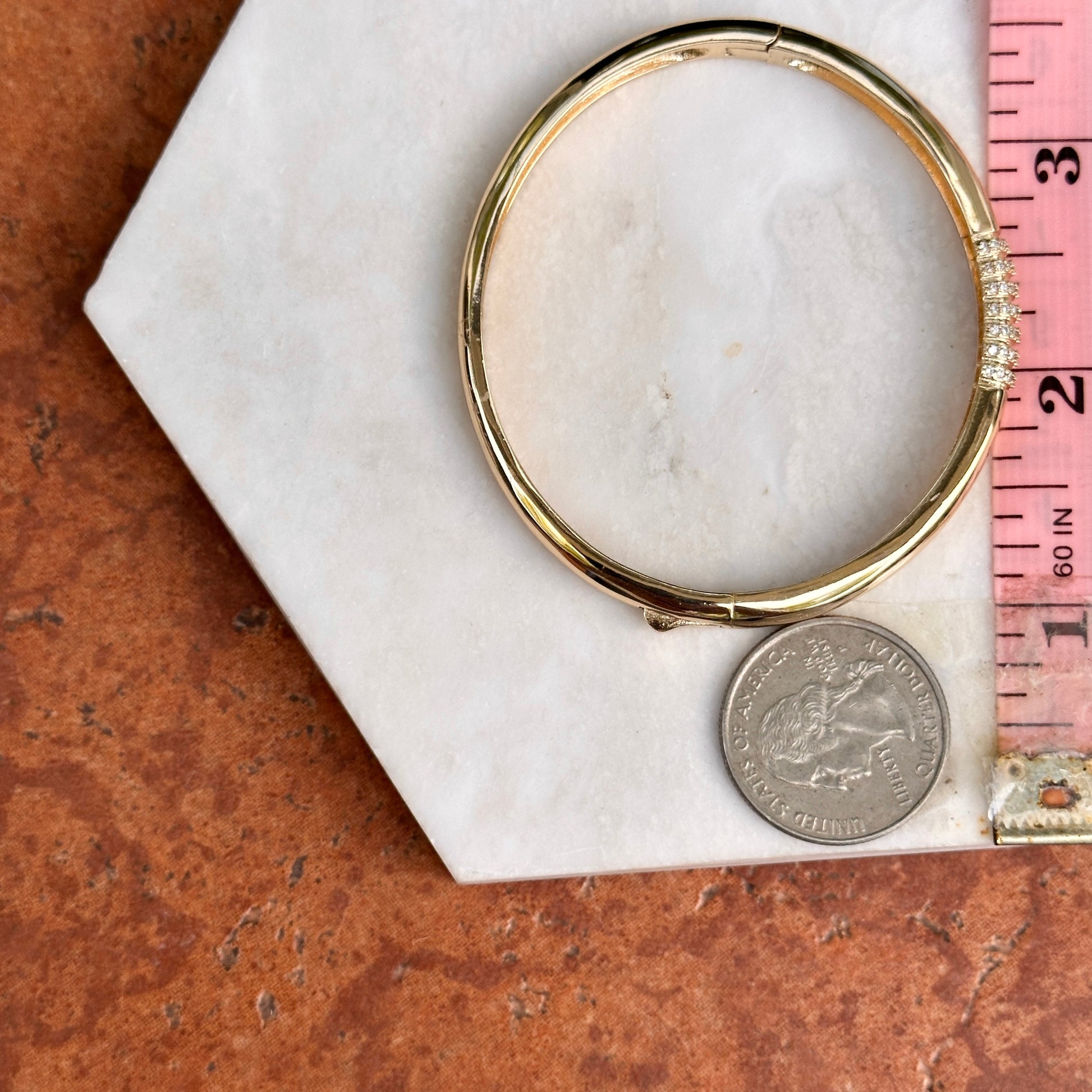 Yellow Gold-Plated Round Cubic Zirconia Hinged Bangle Bracelet
