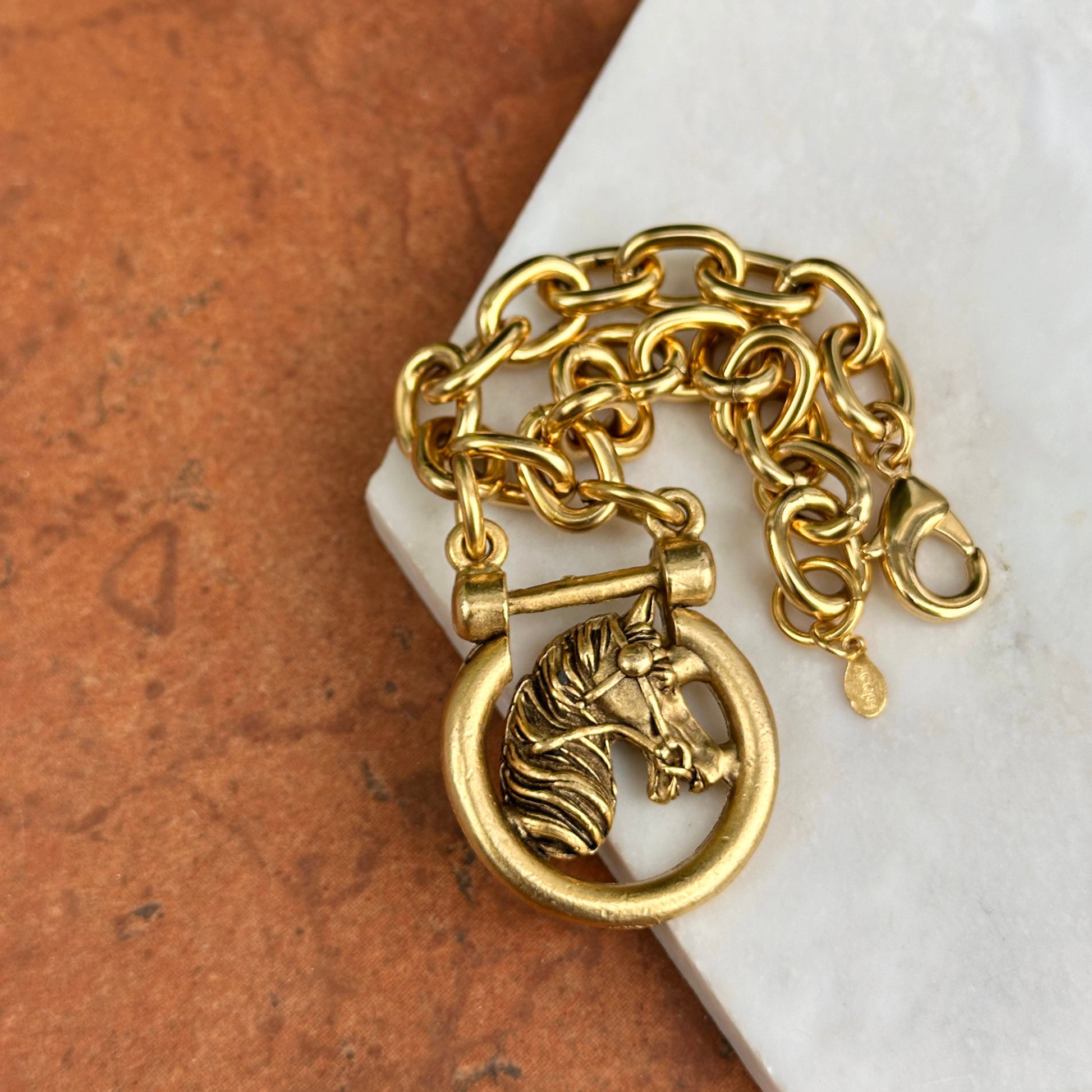 Yellow Gold-Plated Shackle Horse Head Oval Link Bracelet