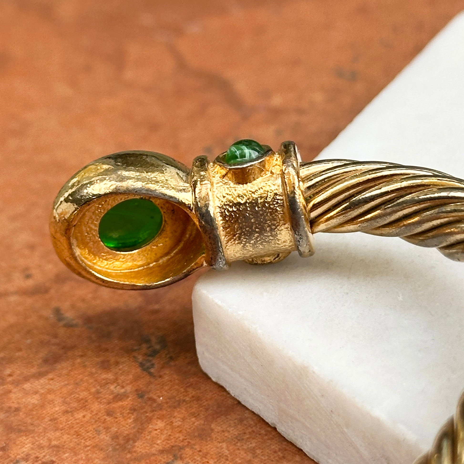 Yellow Gold-Plated Twisted Synthetic Cabochon Stone Cuff Bracelet