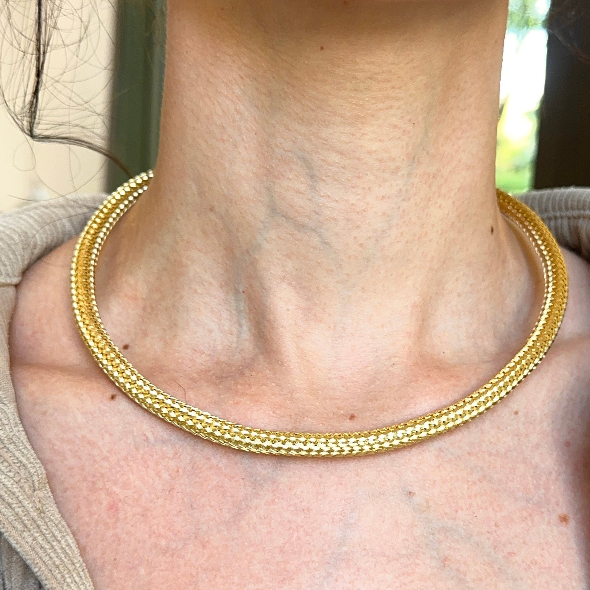 Yellow Gold-Plated Woven Mesh Collar Necklace 16in + Extension