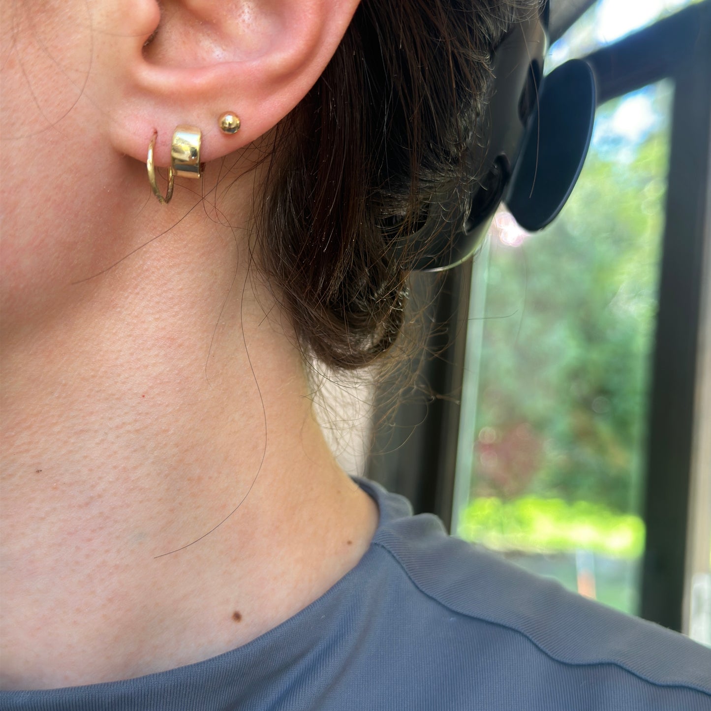 Small + petite 14KT yellow gold diamond-cut endless hoop earrings. Features matte + shiny finishes.