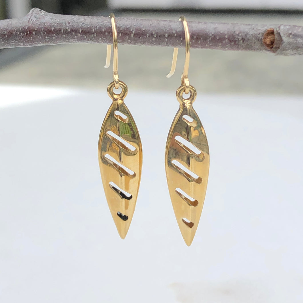 14KT yellow gold designed euro-wire shiny teardrop with cut-out pattern earrings.