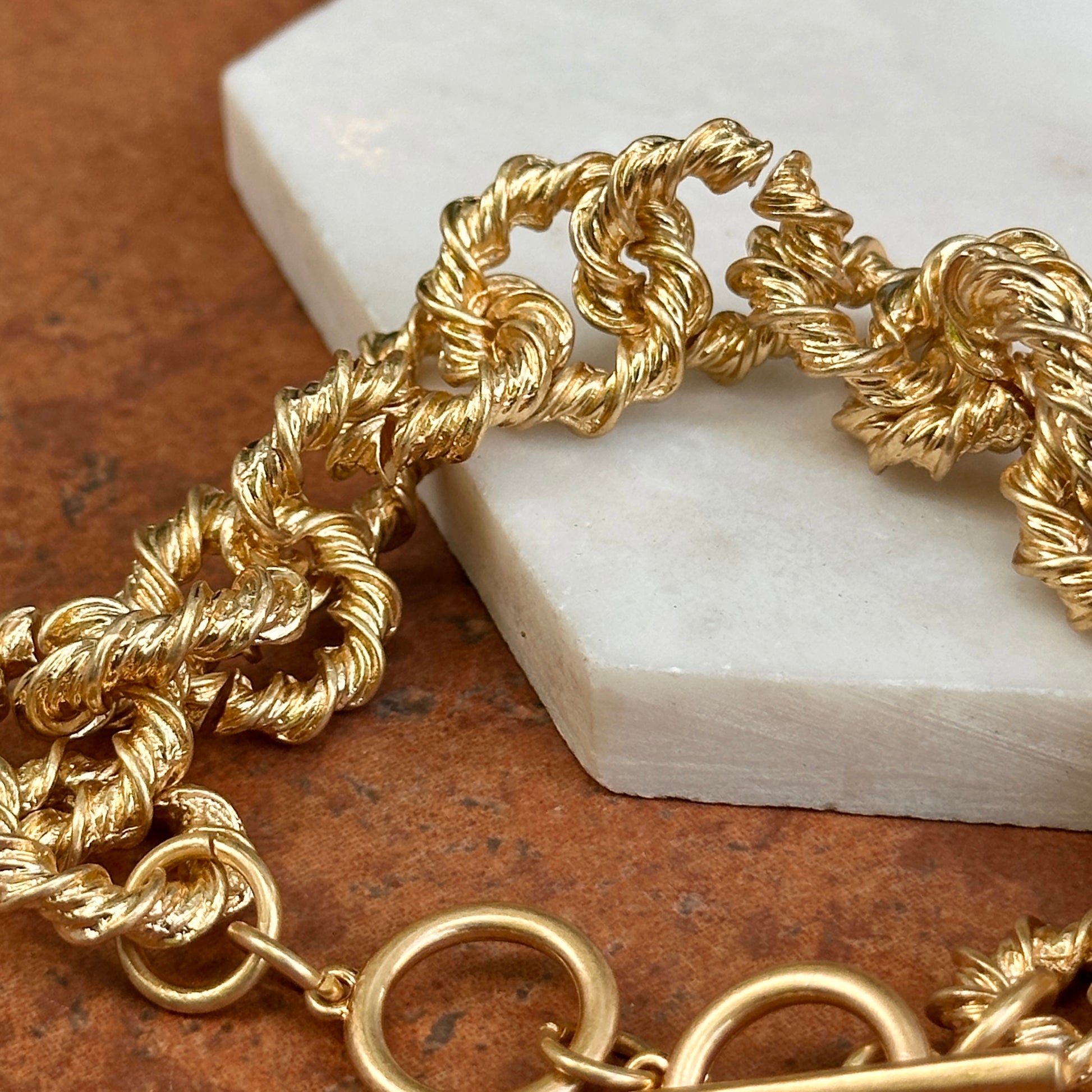 Yellow Gold Tone Large Twisted Circle Link Adjustable Bracelet with Toggle Clasp