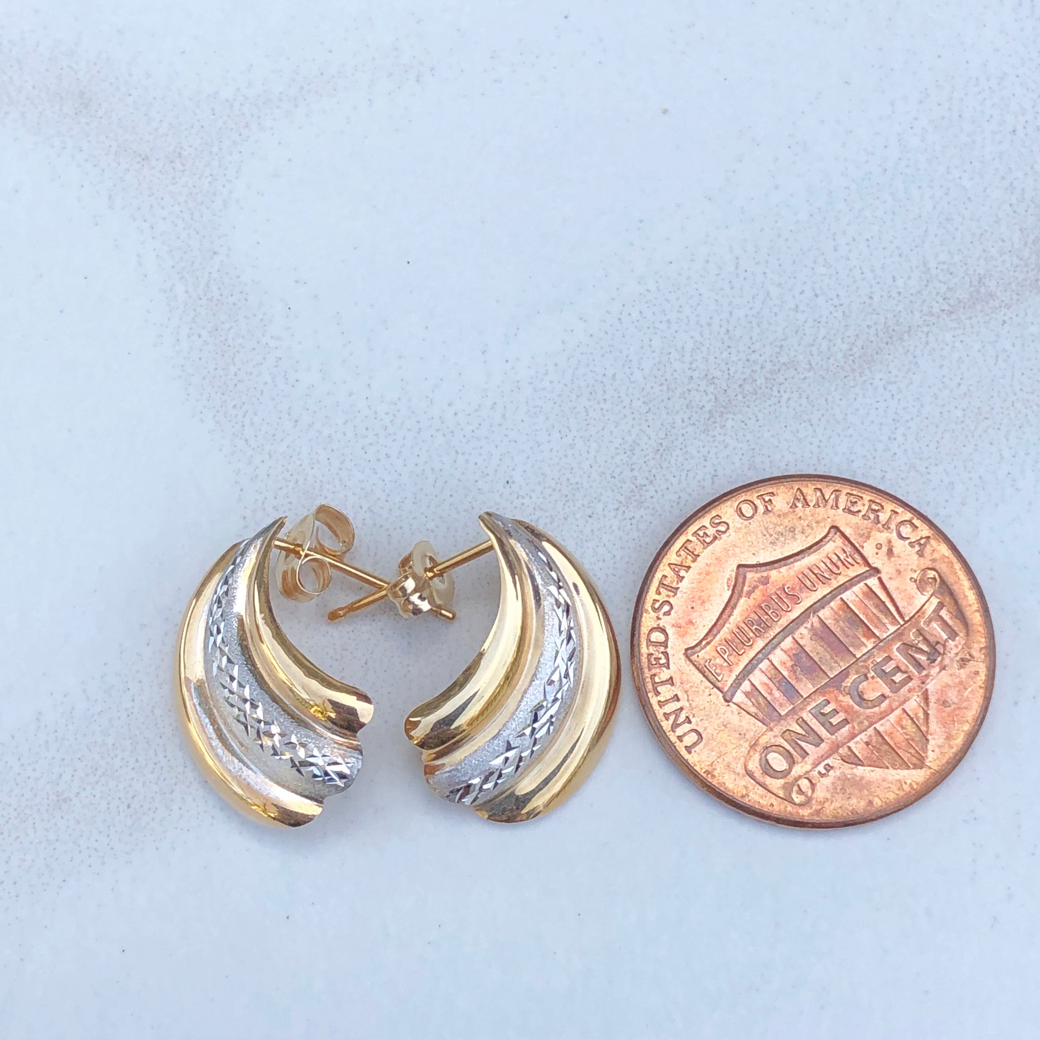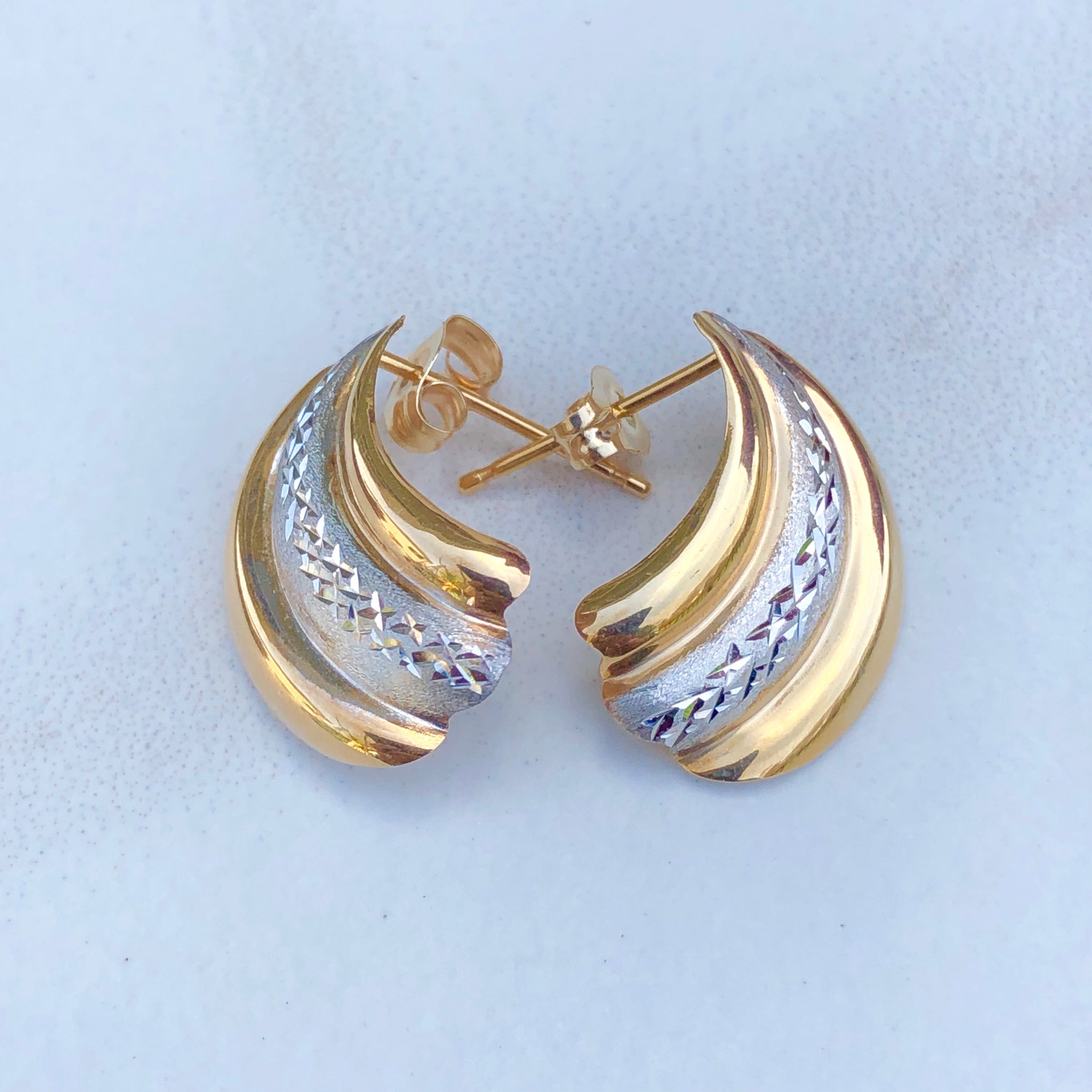 14KT Yellow Gold + White Gold Diamond-Cut Shell Earrings